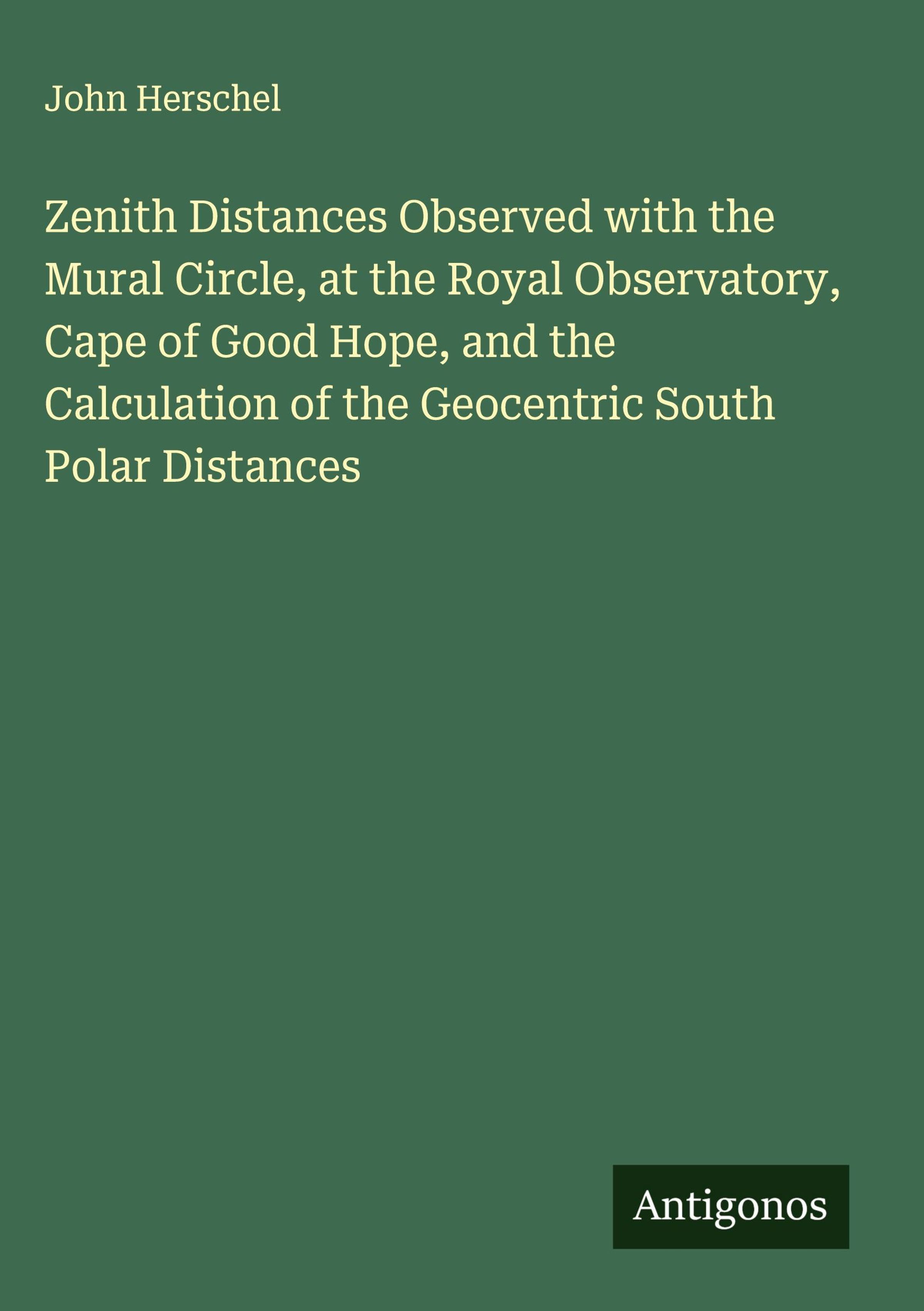 John Herschel: Zenith Distances Observed with the Mural Circle, at the Royal Observatory, Cape of Good Hope, and..., Gebunden