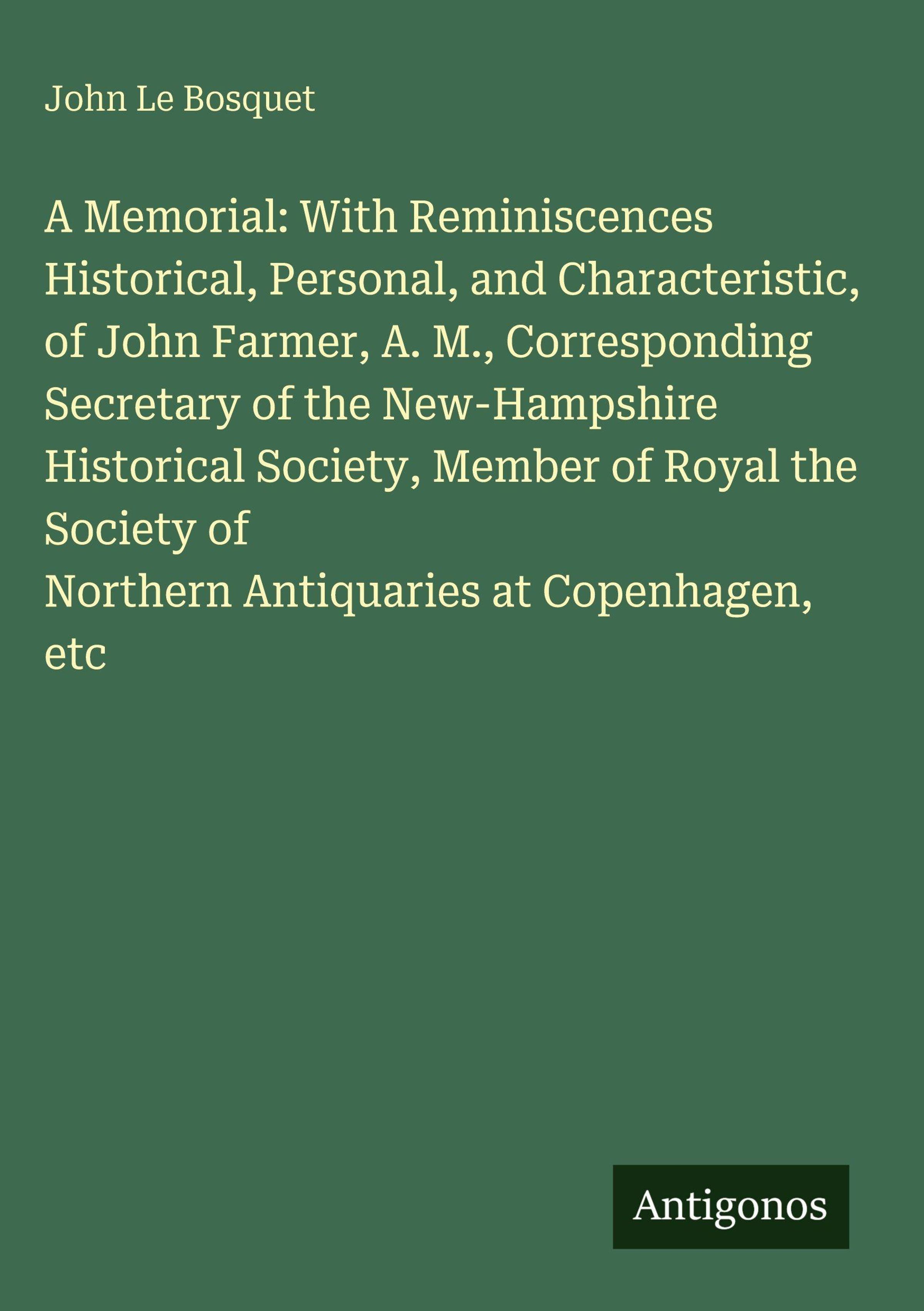 A Memorial: With Reminiscences Historical, Personal, and Characteristic, of John Farmer, A. M., Corresponding Secretary of the New-Hampshire Historical Society, Member of Royal the Society of Northern Antiquaries at Copenhagen, etc