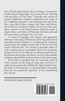 Never before translated into the vernacular, John of Ford's sermons on the Song of Songs have survived in a single extant manuscript. Hidden for eight hundred years, the abbot of Ford emerges as a spiritual father who speaks from his own profound experience of the transforming love of God.