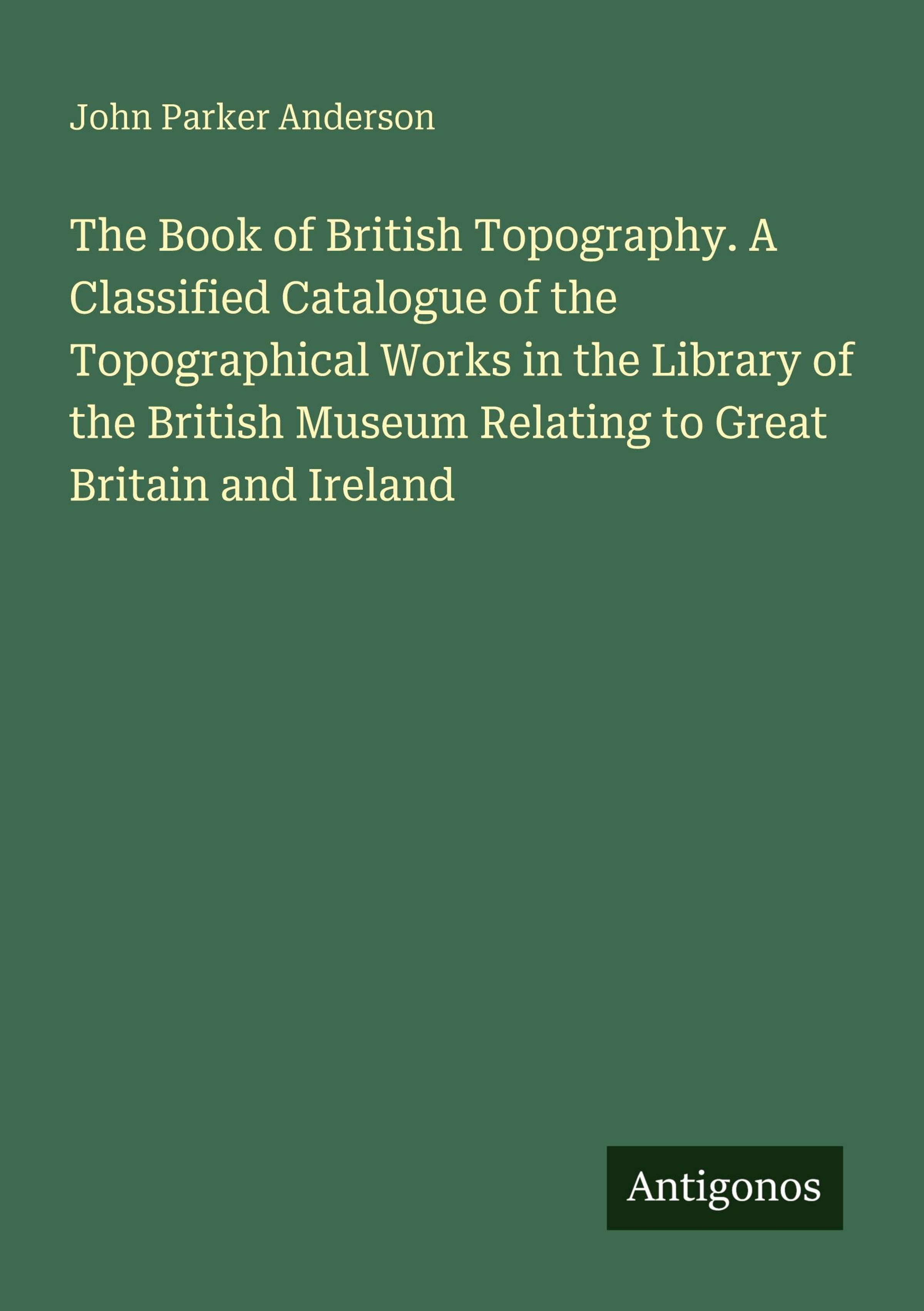 John Parker Anderson: The Book of British Topography. A Classified Catalogue of the Topographical Works in the..., Kartoniert / Broschiert