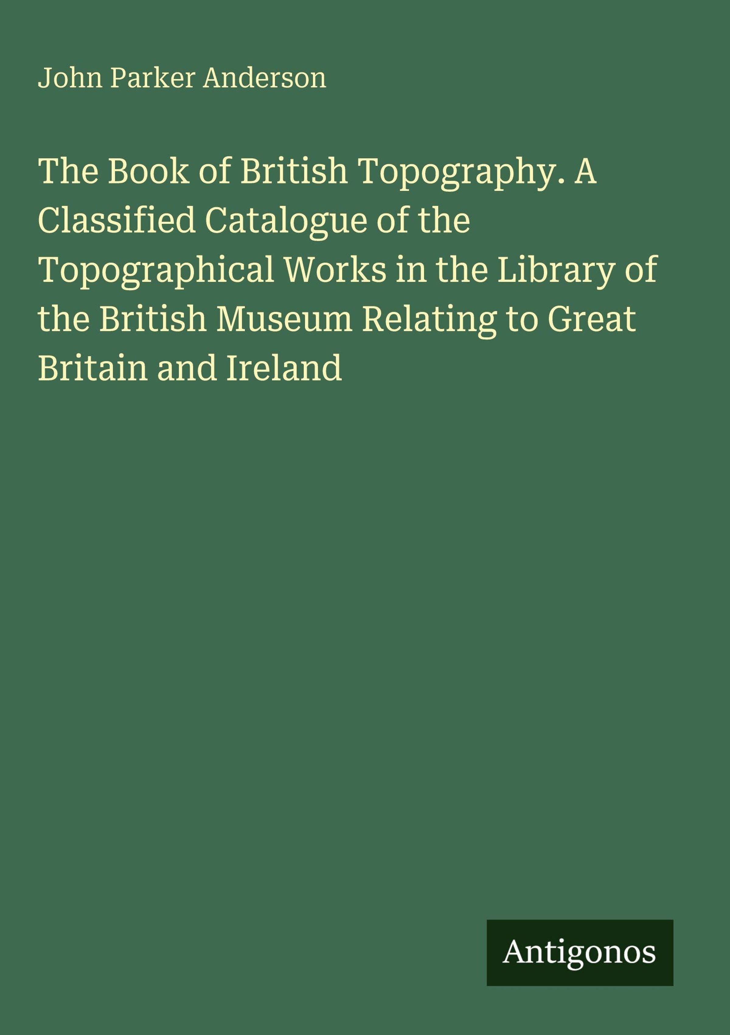 John Parker Anderson: The Book of British Topography. A Classified Catalogue of the Topographical Works in the..., Gebunden