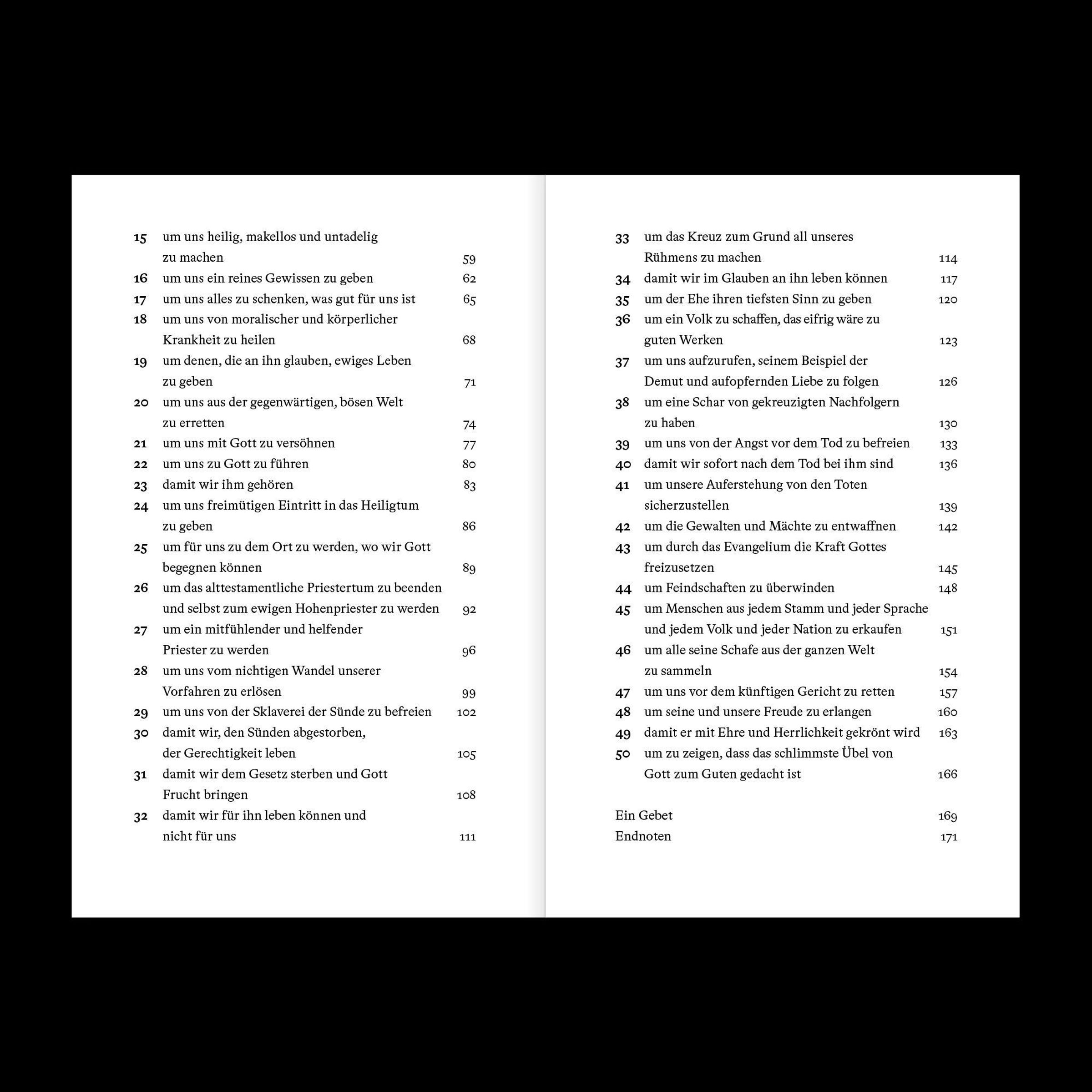 John Piper führt fünfzig biblische Gründe dafür an und zeigt auf: Jesu Tod nimmt den gerechten Zorn Gottes weg, erfüllt vollkommenen Gehorsam und seine Auferstehung besiegelt, dass sein Opfer genügt - für jeden, der darauf vertraut.