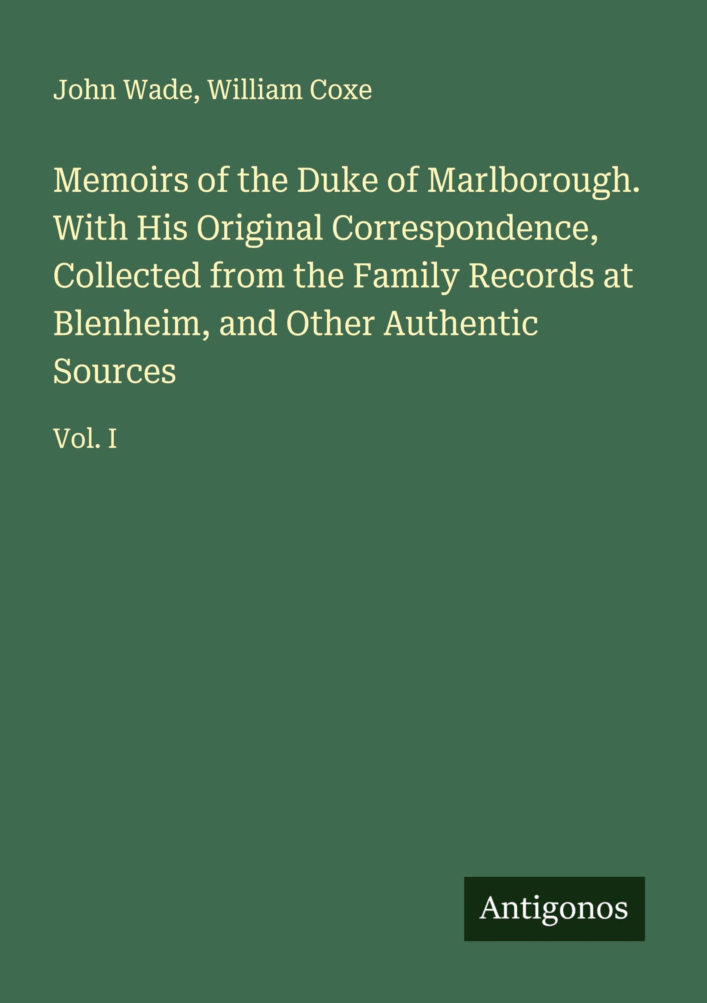 Memoirs of the Duke of Marlborough. With His Original Correspondence, Collected from the Family Records at Blenheim, and Other Authentic Sources