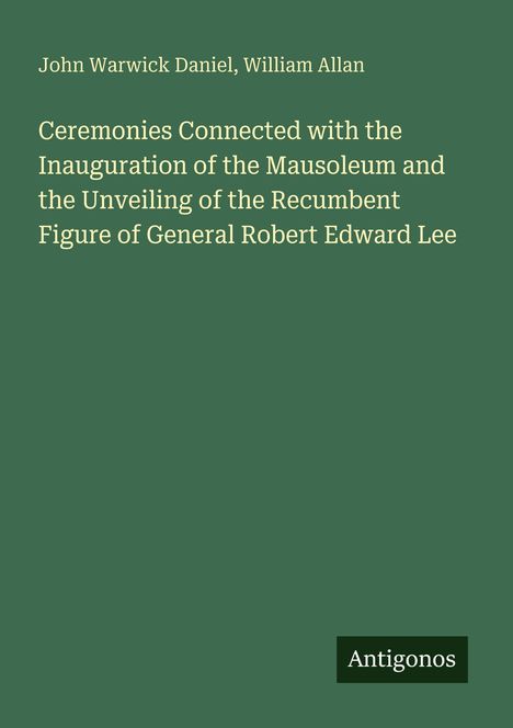 Ceremonies Connected with the Inauguration of the Mausoleum and the Unveiling of the Recumbent Figure of General Robert Edward Lee