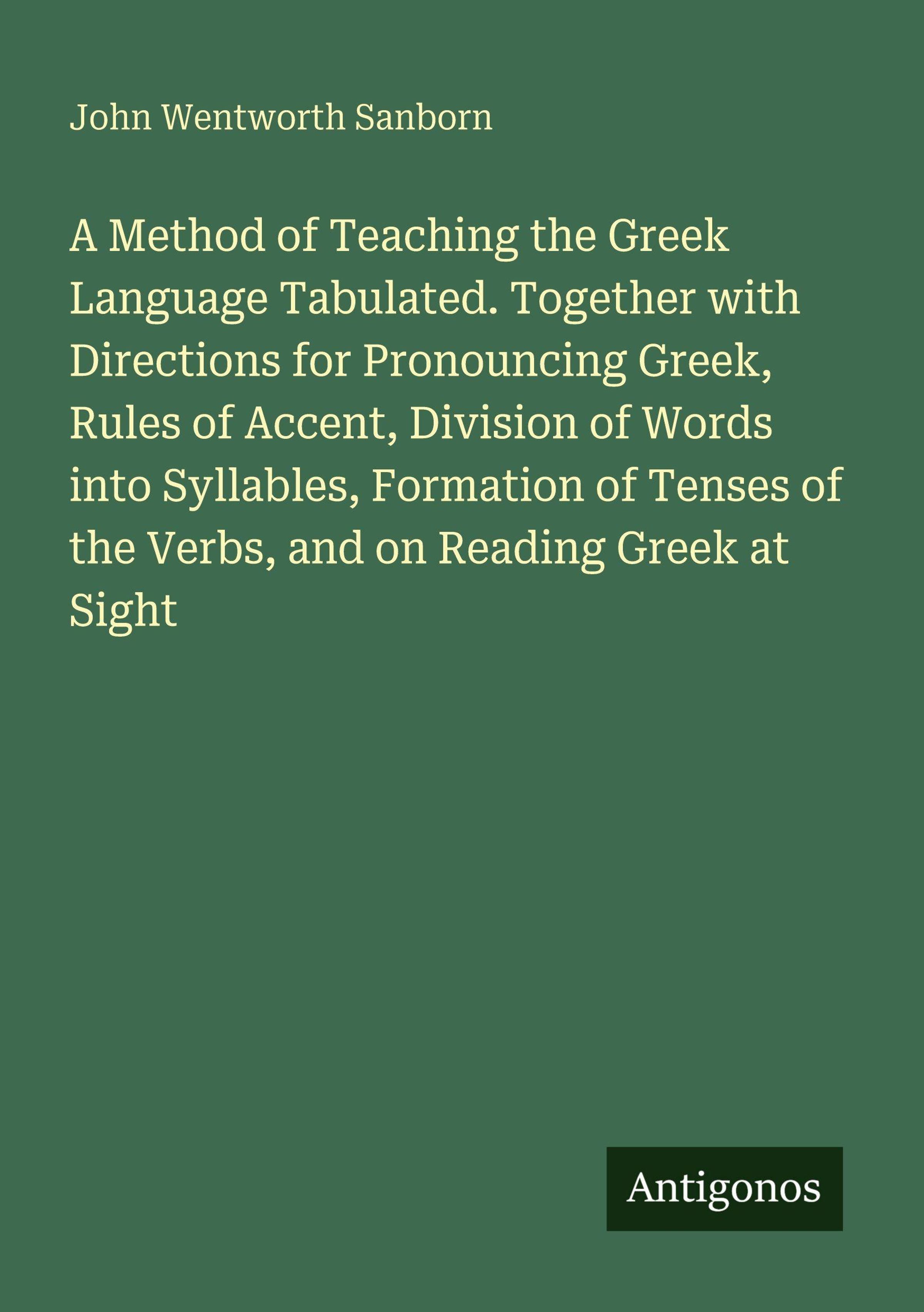 A Method of Teaching the Greek Language Tabulated. Together with Directions for Pronouncing Greek, Rules of Accent, Division of Words into Syllables, Formation of Tenses of the Verbs, and on Reading Greek at Sight
