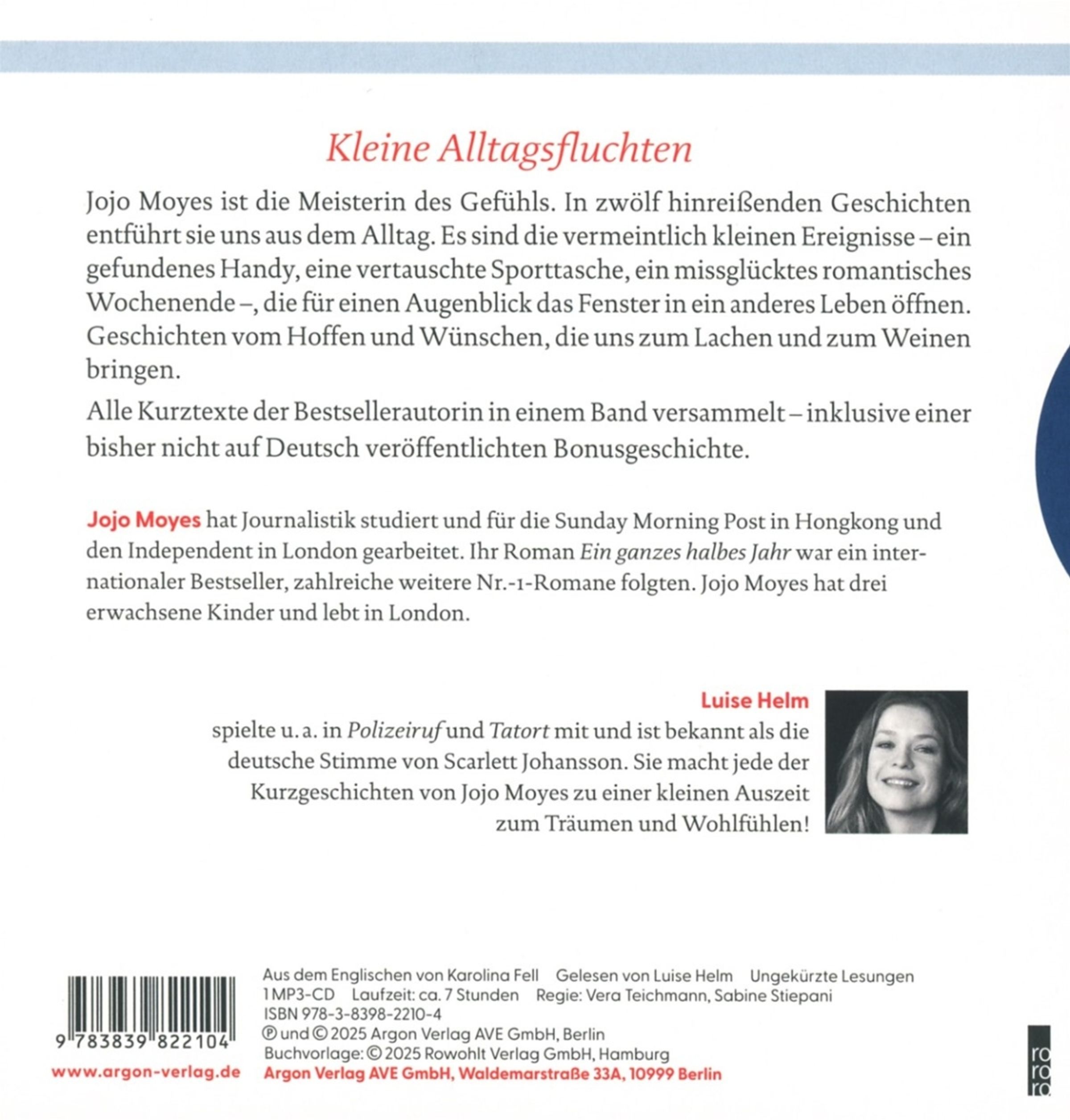Luise Helm macht die Hörbücher von Jojo Moyes zu besonderen Auszeiten zum Träumen, Lachen und Glücklichsein!