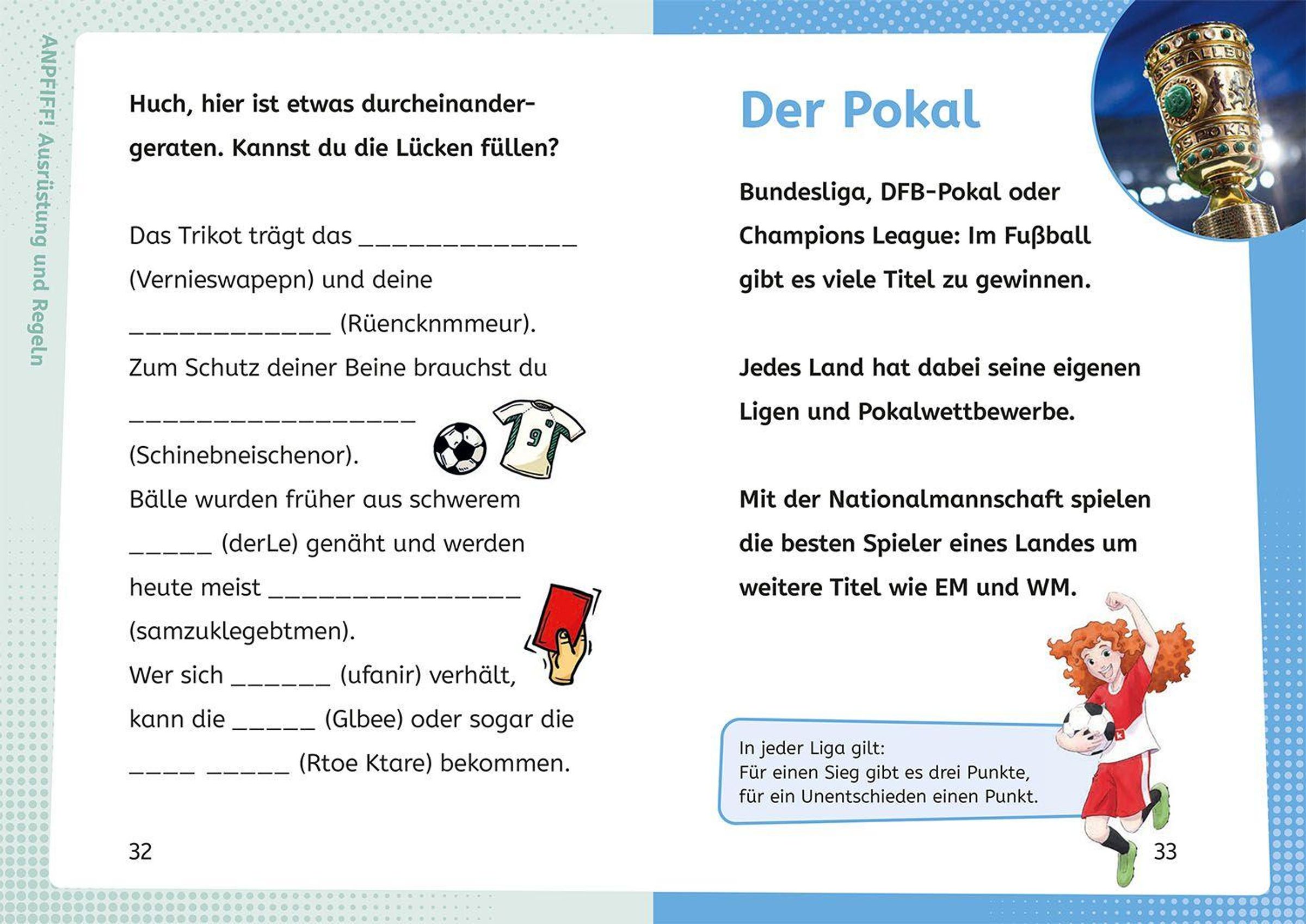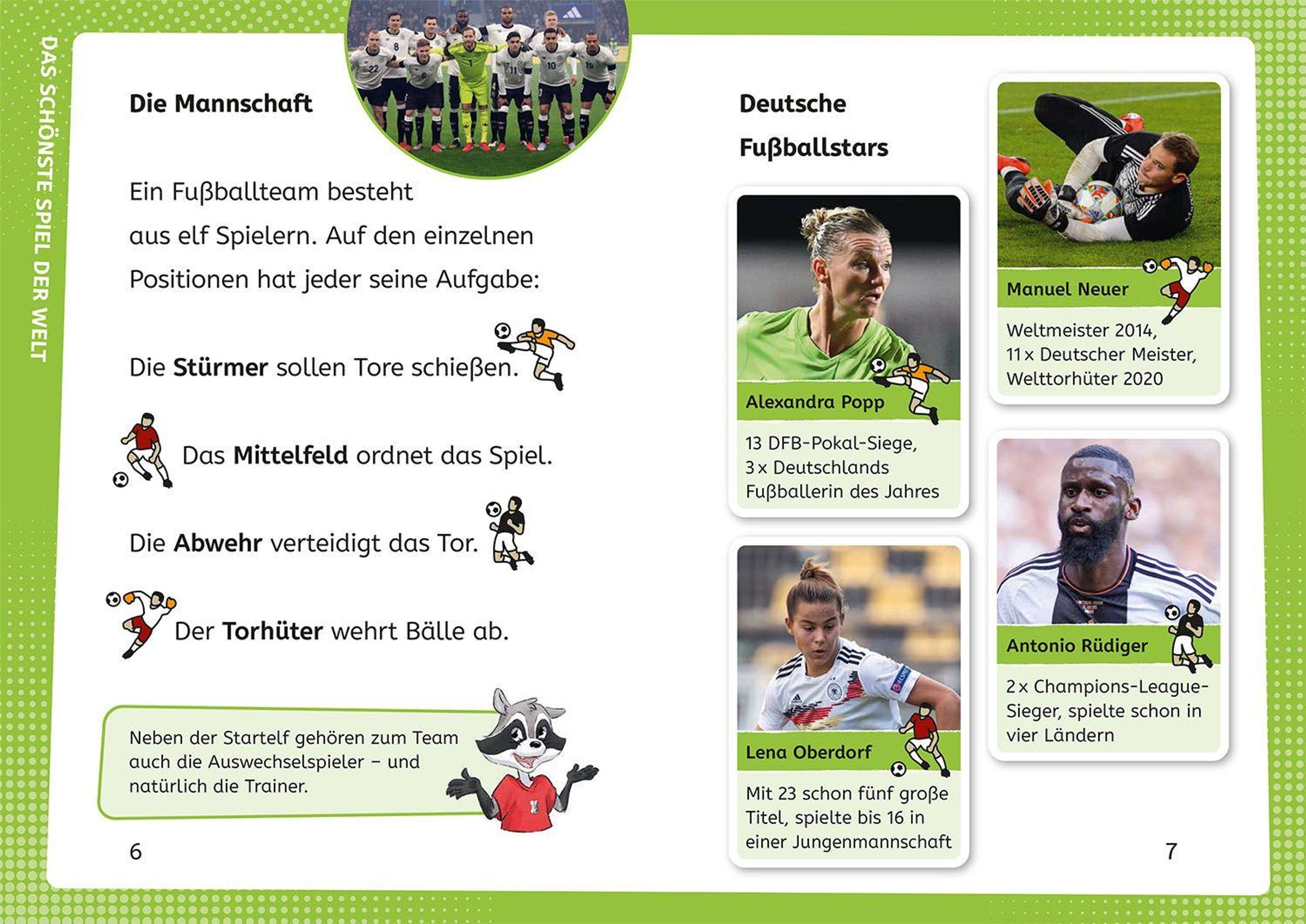 Kleine Fußball-Fans ab der 2. Klasse werden hier zu echten Profis! In diesem Buch finden Leseanfängerinnen und Leseanfänger alle Antworten auf ihre Fragen rund um den Lieblingssport Fußball - von Spielregeln, Ausrüstung und Technik bis zu bekannten Fußballstars. Ein Nachwuchs-Spezial liefert Einblicke in den Trainingsalltag von neuen Fußball-Talenten. Große Fibelschrift, übersichtliche Kapitel und viele bunte Illustrationen erleichtern das selbstständige Lesen und machen jede Seite zum Erlebnis. Mitmachrätsel und Kreuzworträtsel regen zum Denken an und stärken spielerisch die Konzentration. EXTRA: Junge Nachwuchstalente im Bereich Profi-Fußball (FC Bayern), Blindenfußball und Schiedsrichter berichten über ihren Werdegang. Wie wird man Profi? Wie ist der Alltag? Wie wird man Schiedsrichterin?