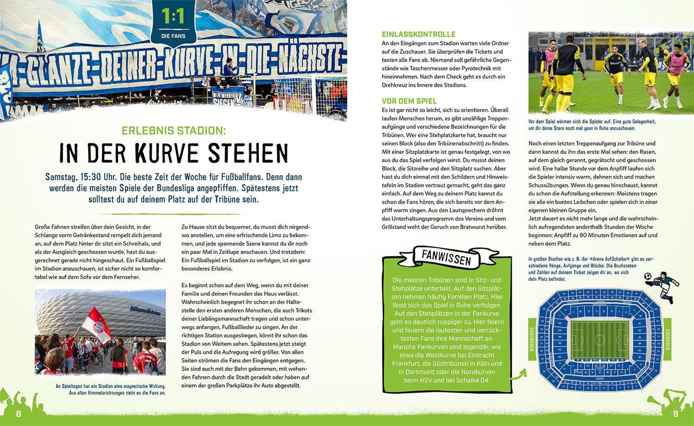Was bedeutet "direkter" und "indirekter" Freistoß? Darf der Torwart den Ball außerhalb des Strafraums mit der Hand stoppen? Und warum ist ein Einwurf manchmal falsch, obwohl der Ball eindeutig im Aus war? In diesem Fußballbuch steht alles drin, was fußballbegeisterte Kinder wissen wollen. In 11 Kapiteln kann man sich zu Spielregeln, Ausrüstung, Vereinen, Bundesliga, Nationalmannschaften, Meisterschaften, Frauenfußball und vielem mehr umfassend informieren. Interessante Rekorde und Kuriositäten sind ebenso enthalten wie ein Extra zu Taktik und Technik - für alle, die genauso erfolgreich spielen möchten wie Messi und Lewandowski. Die Texte sind leicht verständlich geschrieben und mit über 600 Fotos und Zeichnungen anschaulich bebildert. Das ultimative Buch zum absoluten Lieblingssport!