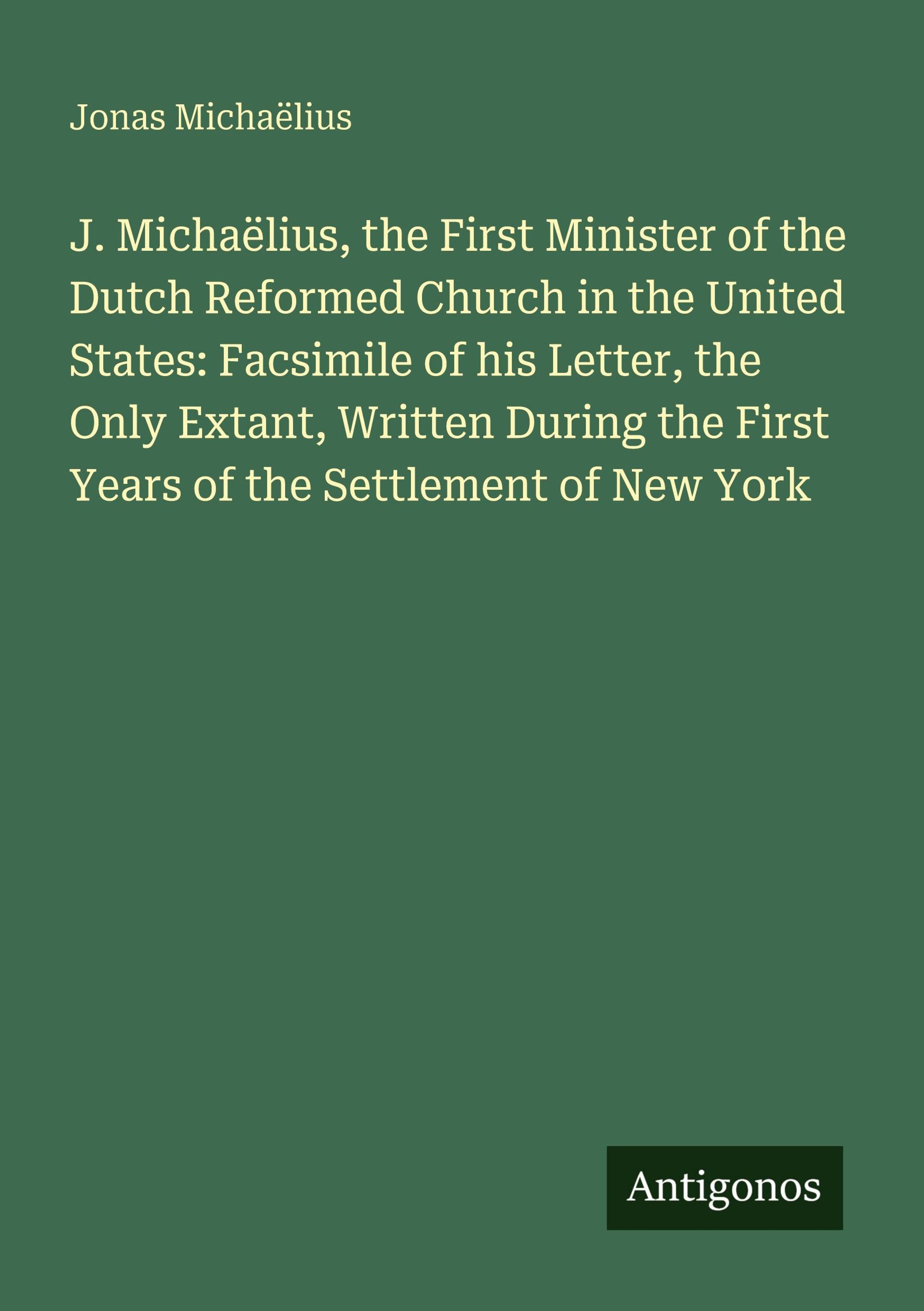 J. Michaëlius, the First Minister of the Dutch Reformed Church in the United States: Facsimile of his Letter, the Only Extant, Written During the First Years of the Settlement of New York