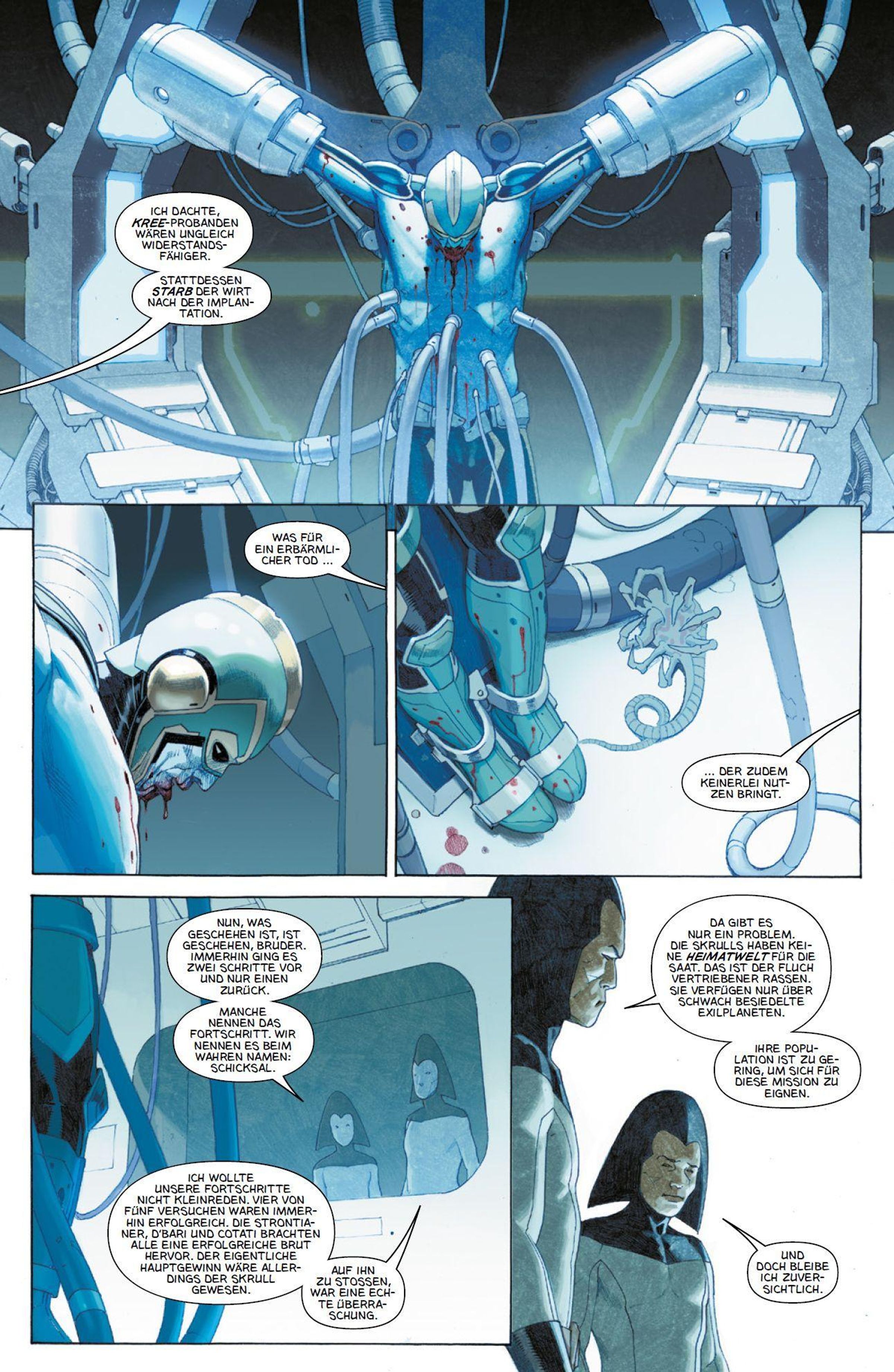 ZERSCHLAGENE HELDEN In einer der vielen möglichen Zukunftsvisionen des Marvel-Universums wird eine der gefährlichsten Spezies des bekannten Weltraums versehentlich von einigen Shi'ar-Wissenschaftlern befreit, übernimmt die Herrschaft und verwüstet ganze Planeten. Zu den besetzten Welten gehört auch die Erde. Doch nicht alle Menschen sind unter den Zähnen und Klauen der Xenomorphe umgekommen. Eine kleine Festungsstadt widersteht nämlich weiterhin den Angriffen der tödlichen Aliens, und ihre Bewohner, darunter Bruce Banner und Carol Danvers, versuchen, einen Weg zu finden, um die vollständige Auslöschung der Menschheit zu verhindern. Eine Lösung, die vielleicht in der DNA eines bestimmten Symbionten liegt ...