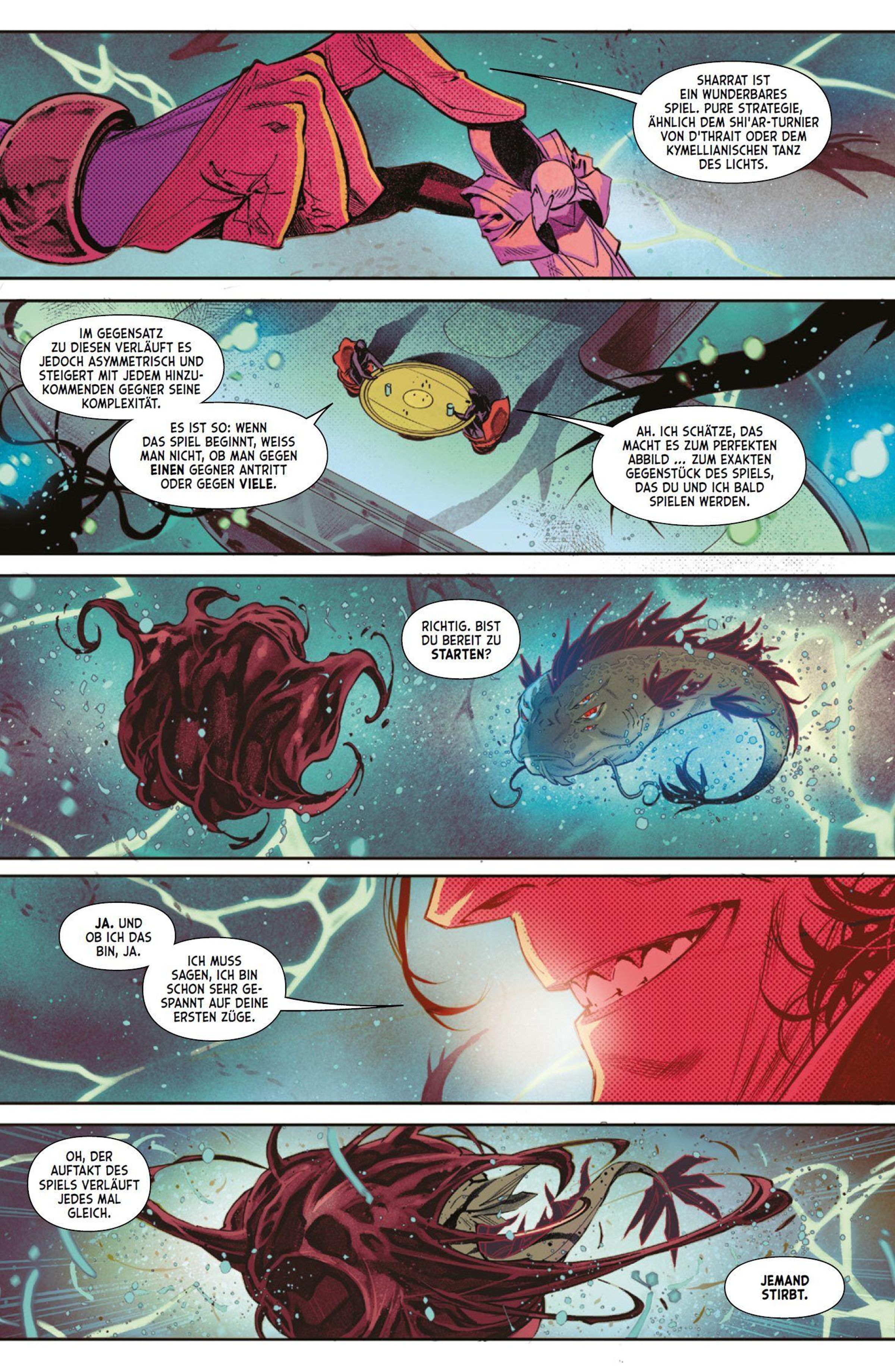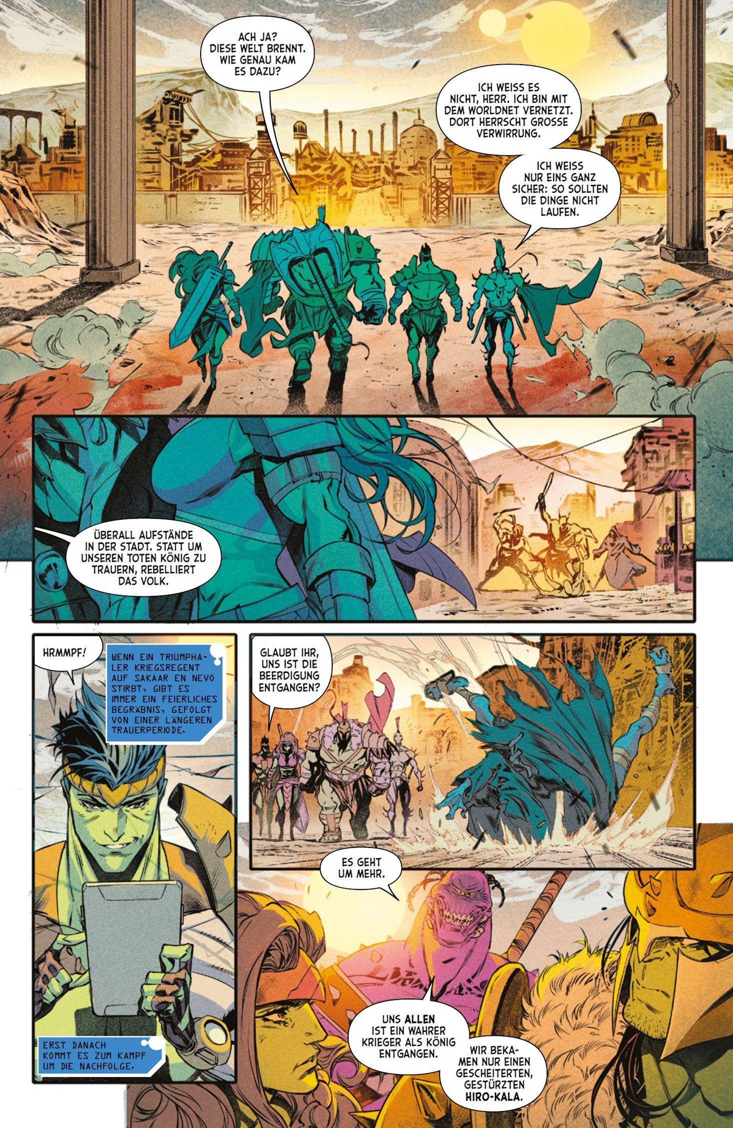 KRIEG IM KOSMOS Die galaktischen Großmächte sind in Aufruhr, denn jemand tötet ihre Anführer. Hulk, Amadeus Cho und She-Hulk reisen deshalb sogar zum Planeten Sakaar En Nevo. Dann eskaliert die Situation, und die Weltraum-Imperien ziehen in den Krieg. Black Panther, Star-Lord und Nova landen im Schlachtengetümmel zwischen Wakanda, Kree und vielen mehr, während im Hintergrund andere die Spielfiguren bewegen. Das neue kosmische Marvel-Event für alle Fans von Planet Hulk, Annihilation und Guardians of the Galaxy, inszeniert von Comic-Genie Jonathan Hickman (X-Men), Federico Vicentini (Spider-Man), Iban Coello (Venom) und anderen.
