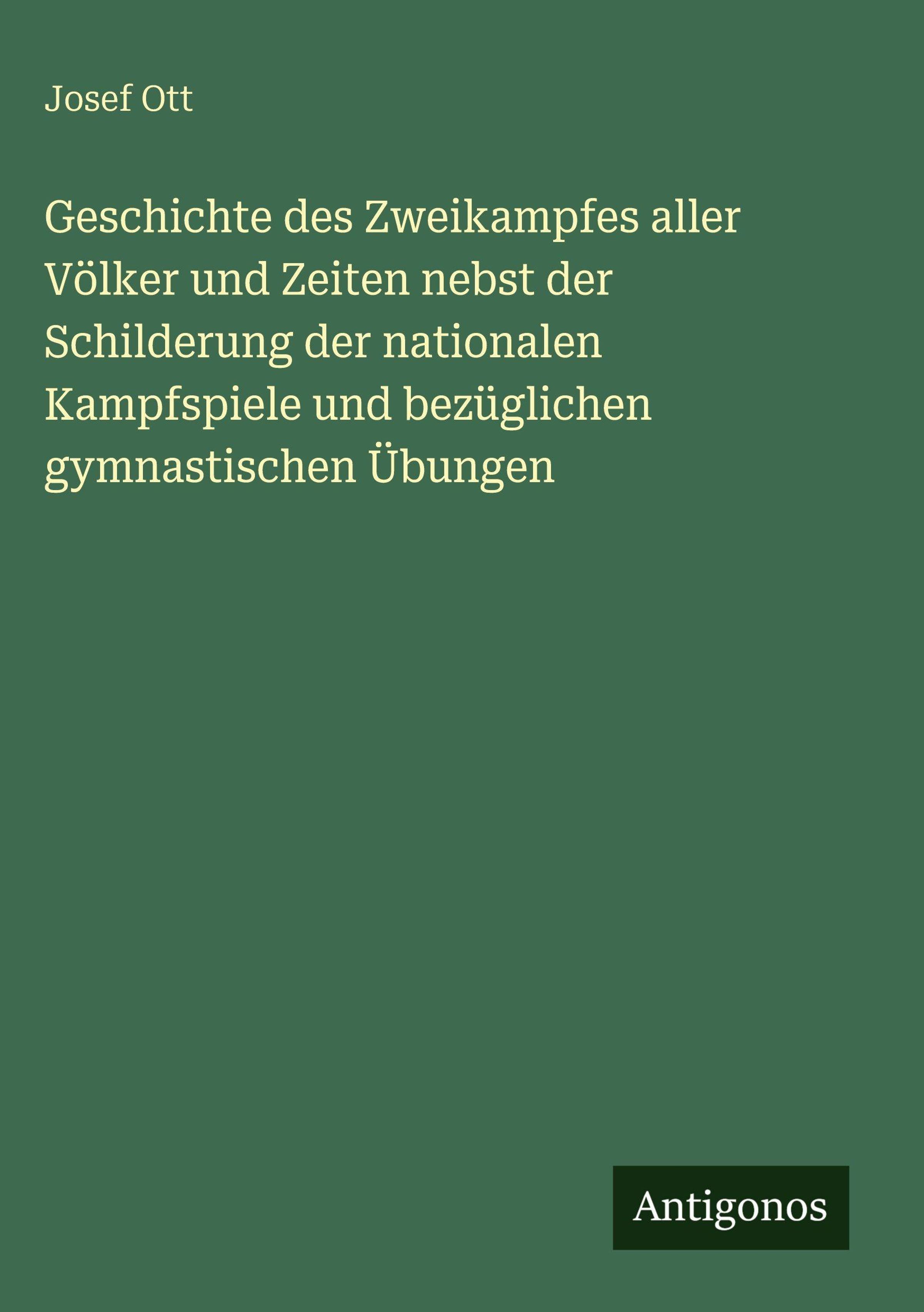 Josef Ott: Geschichte des Zweikampfes aller Völker und Zeiten nebst der Schilderung der nationalen Kampfspiele..., Gebunden