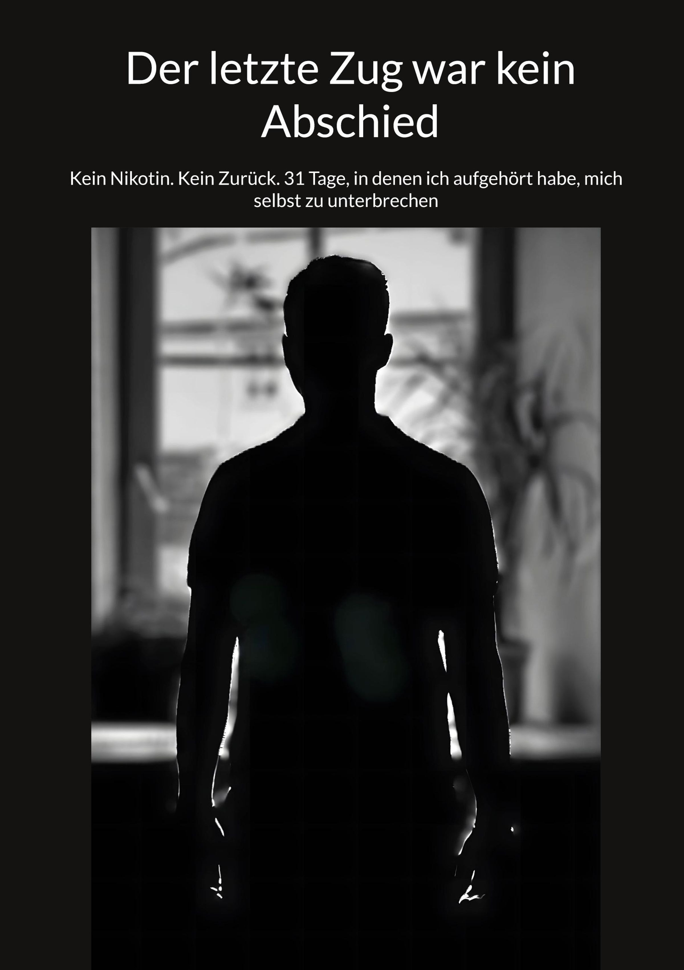 Text oben: "Der letzte Zug war kein Abschied." Unten: "Kein Nikotin. Kein Zurück..." Silhouette eines Mannes., Buch