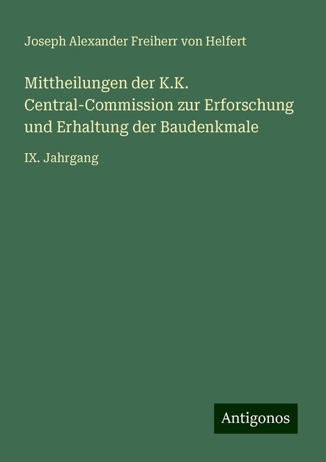 Joseph Alexander Freiherr Von Helfert: Helfert, J: Mittheilungen der K.K. Central-Commission zur Er, Flexibler Einband
