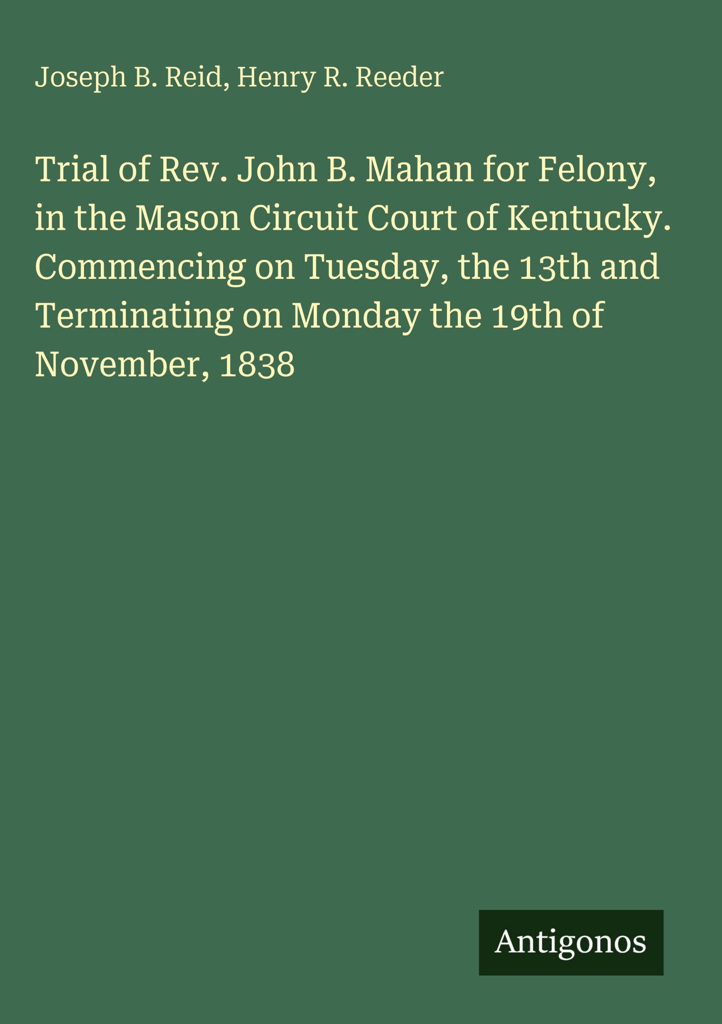 Joseph B. Reid: Trial of Rev. John B. Mahan for Felony, in the Mason Circuit Court of Kentucky. Commencing on..., Gebunden