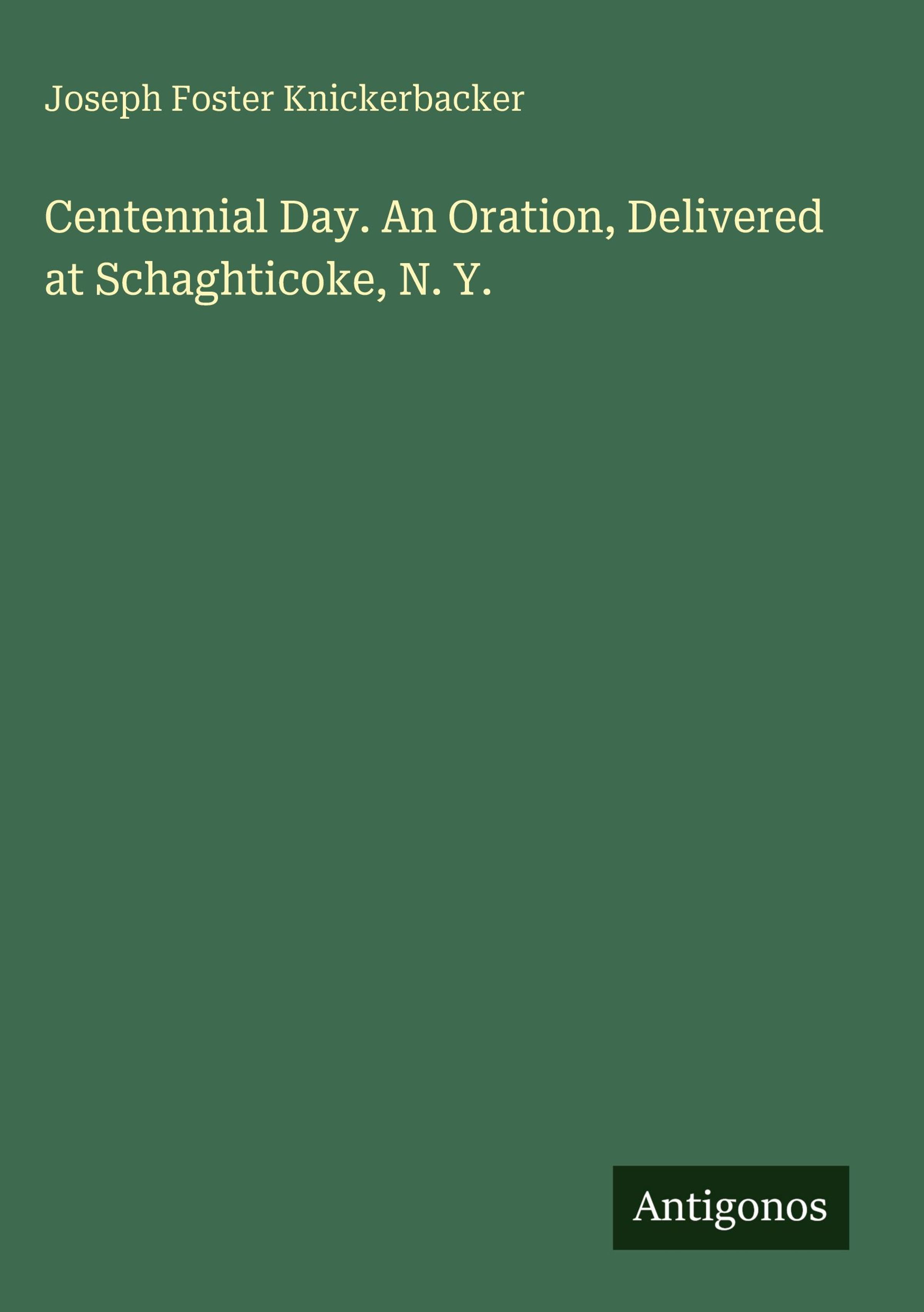 Centennial Day. An Oration, Delivered at Schaghticoke, N. Y.