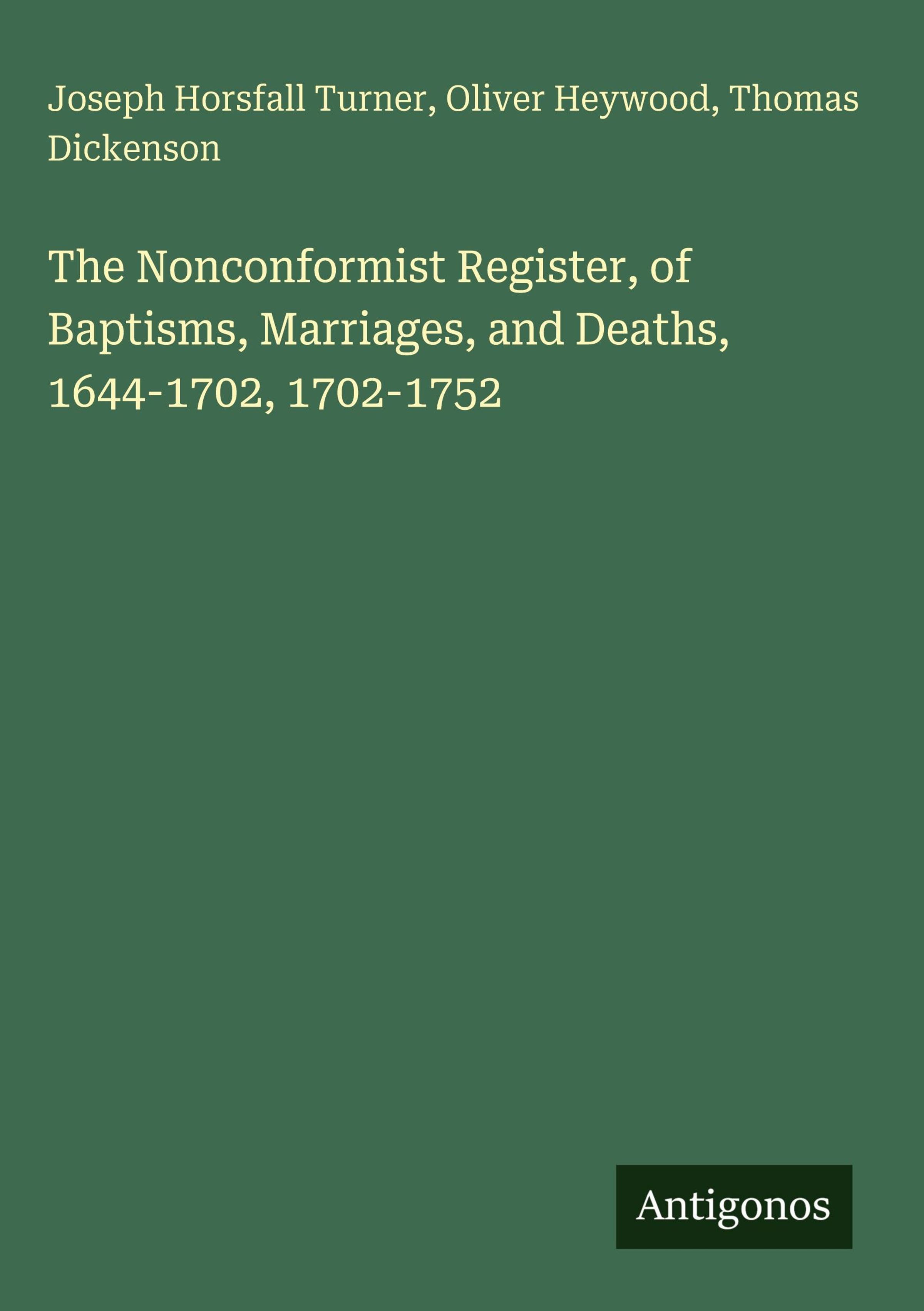 Joseph Horsfall Turner: The Nonconformist Register, of Baptisms, Marriages, and Deaths, 1644-1702, 1702-1752, Gebunden