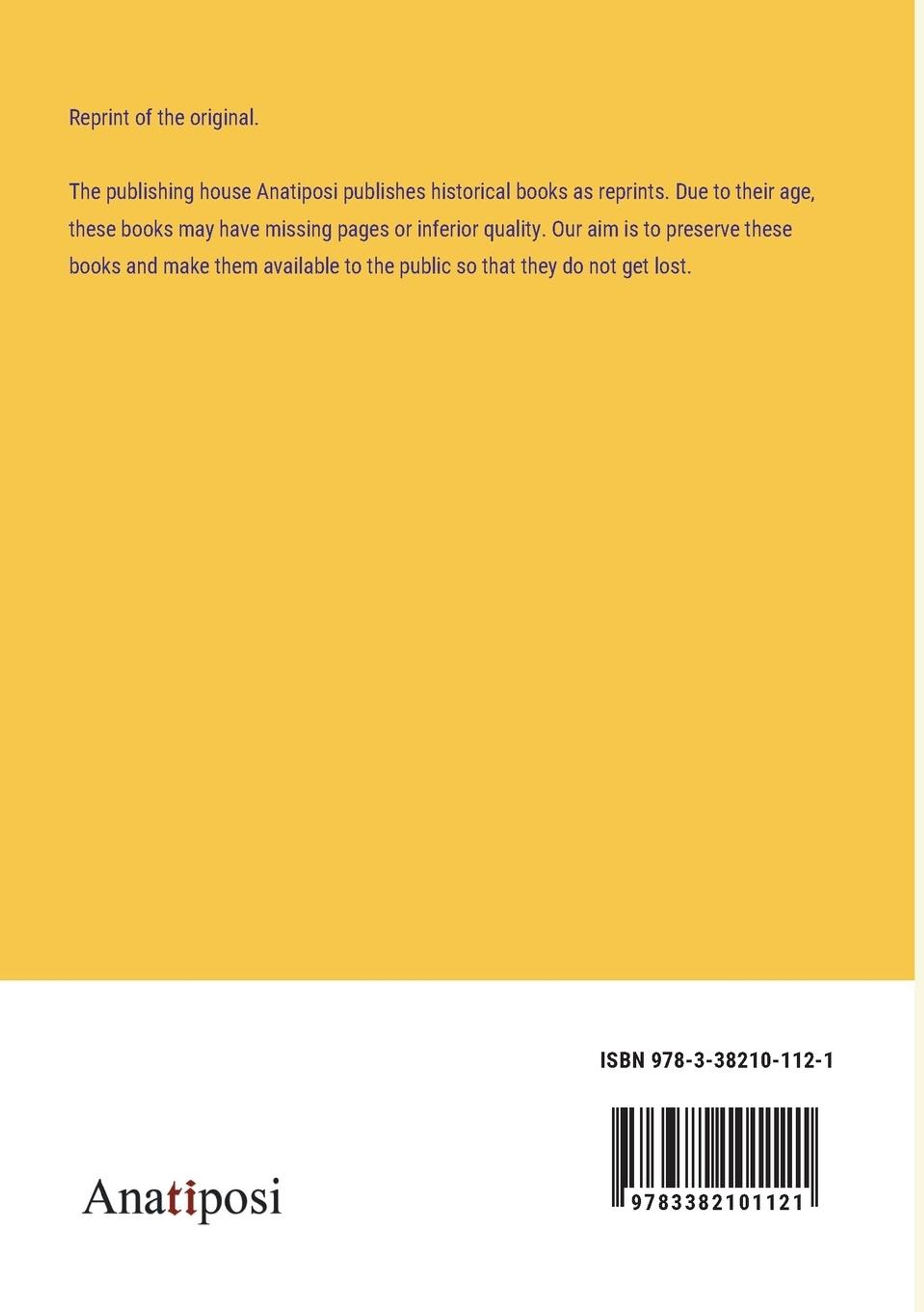 Reprint of the original. The publishing house Anatiposi publishes historical books as reprints. Due to their age, these books may have missing pages or inferior quality. Our aim is to preserve these books and make them available to the public so that they do not get lost.