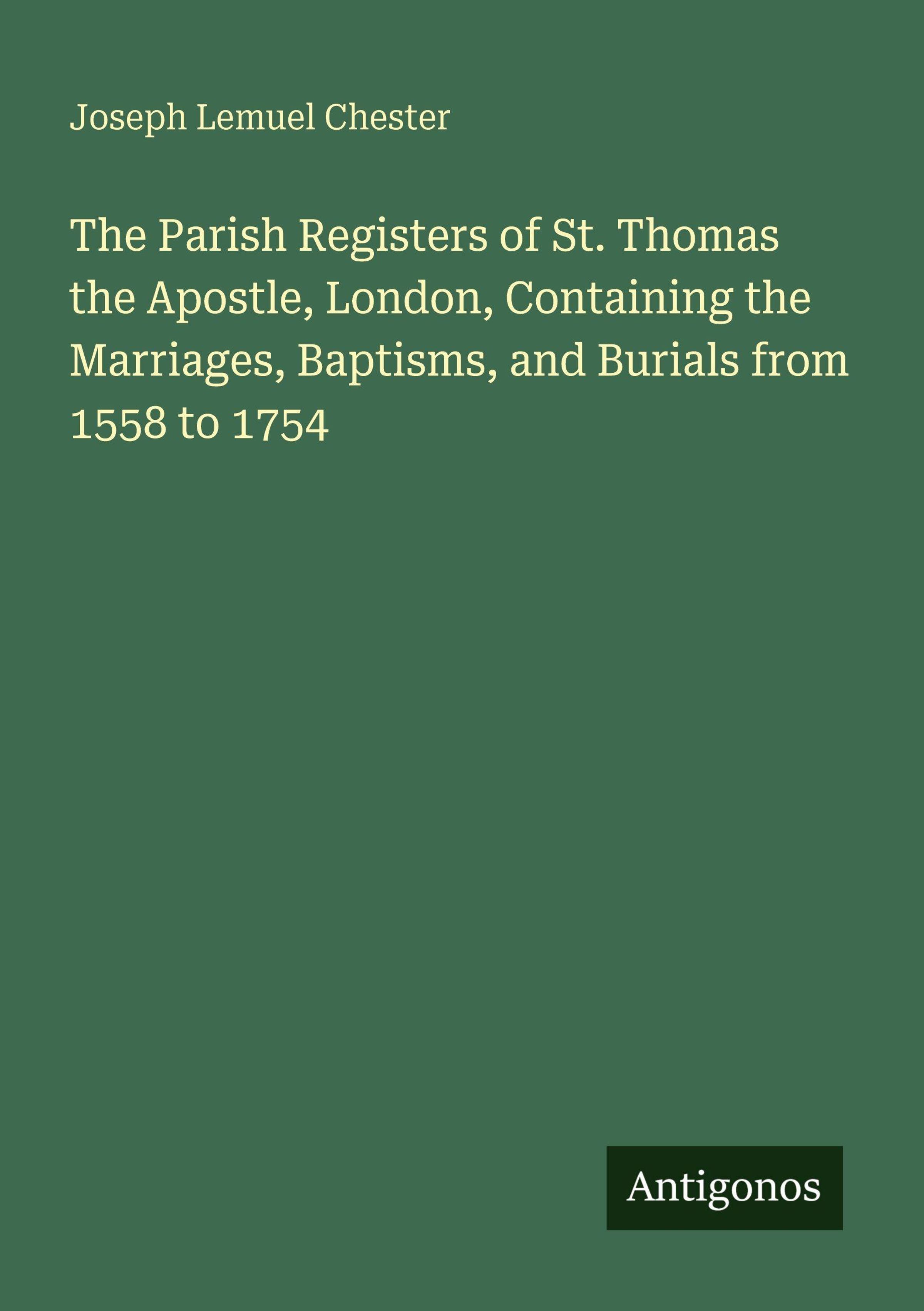 The Parish Registers of St. Thomas the Apostle, London, Containing the Marriages, Baptisms, and Burials from 1558 to 1754