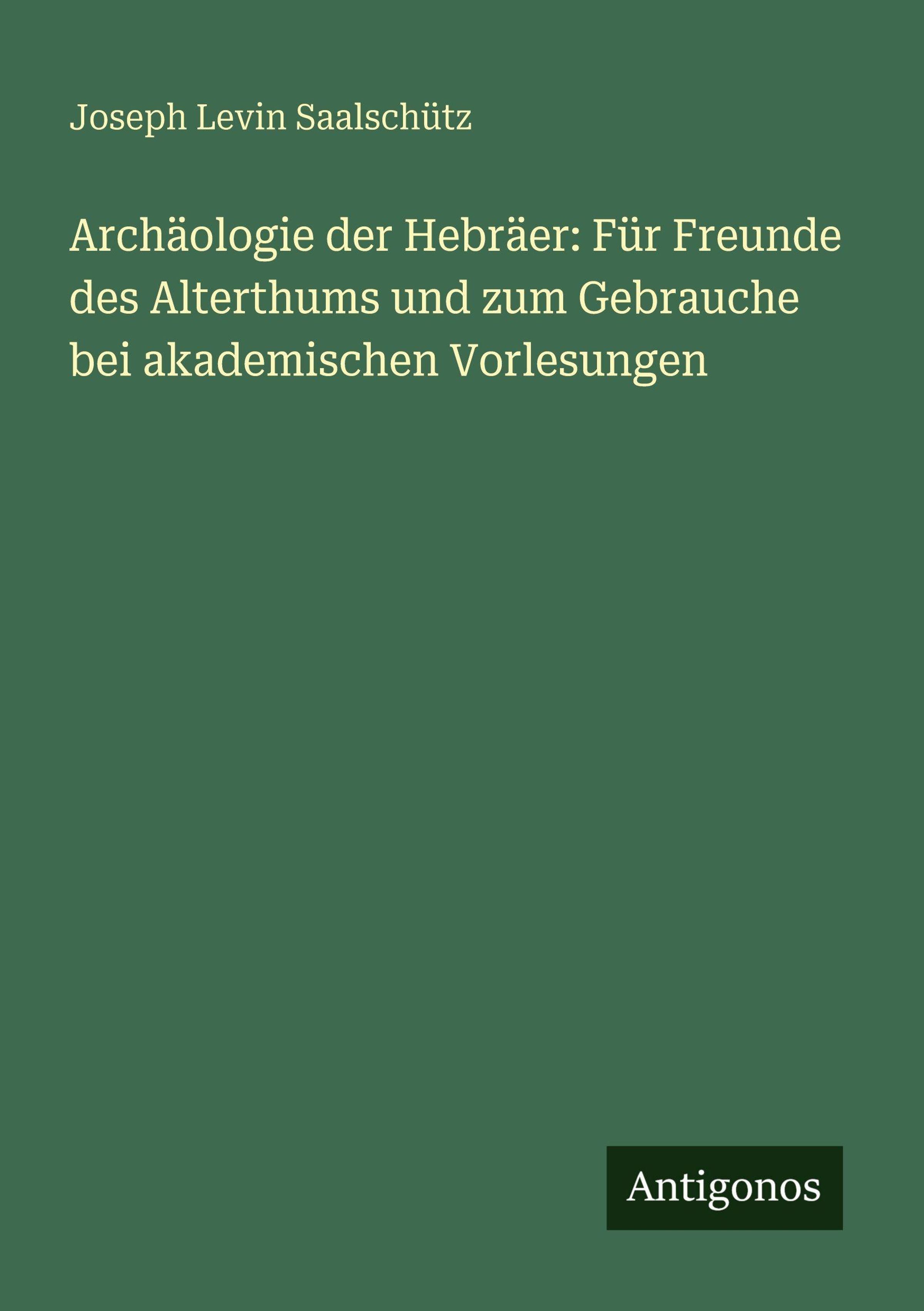 Archäologie der Hebräer: Für Freunde des Alterthums und zum Gebrauche bei akademischen Vorlesungen