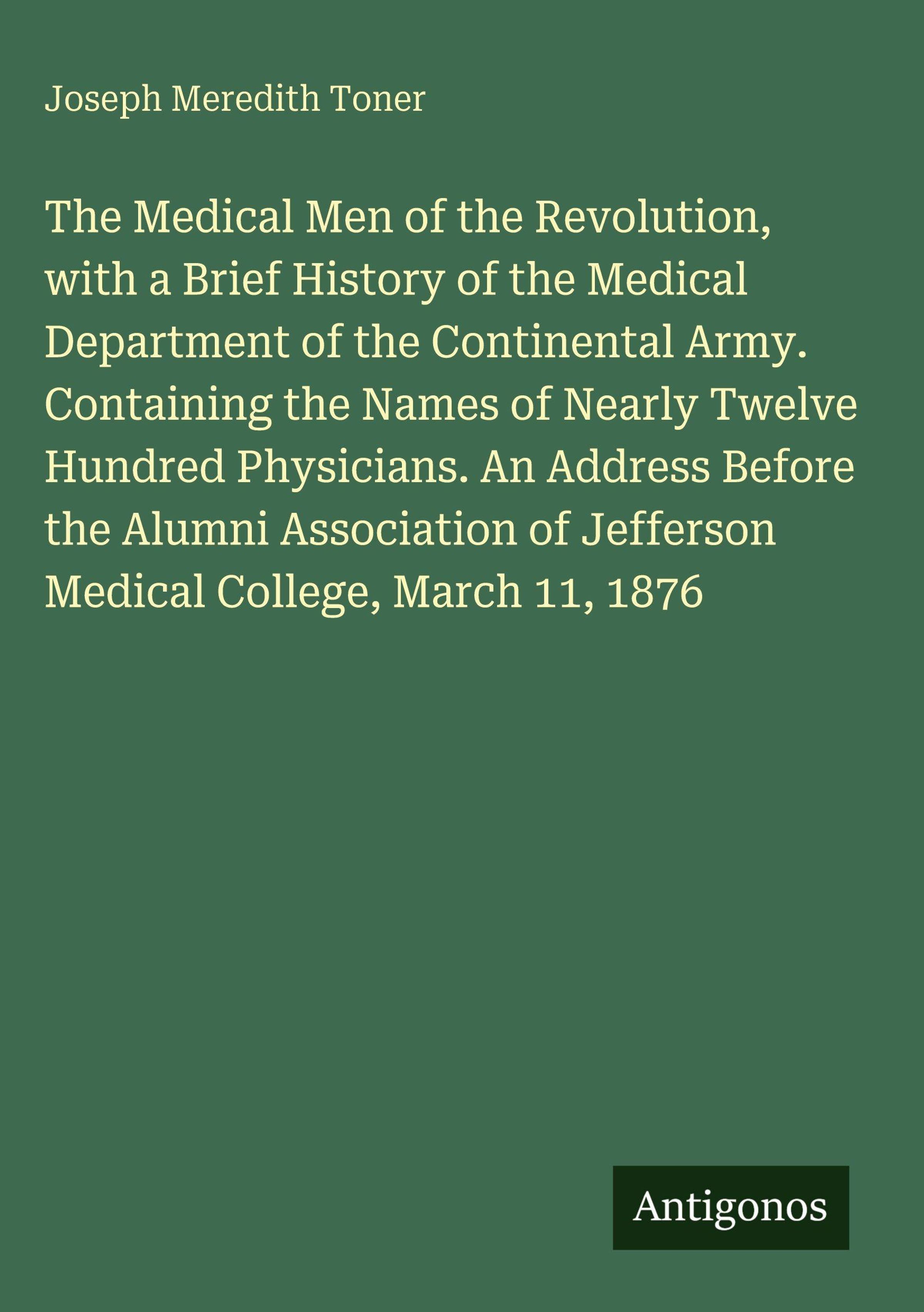 The Medical Men of the Revolution, with a Brief History of the Medical Department of the Continental Army. Containing the Names of Nearly Twelve Hundred Physicians. An Address Before the Alumni Association of Jefferson Medical College, March 11, 1876