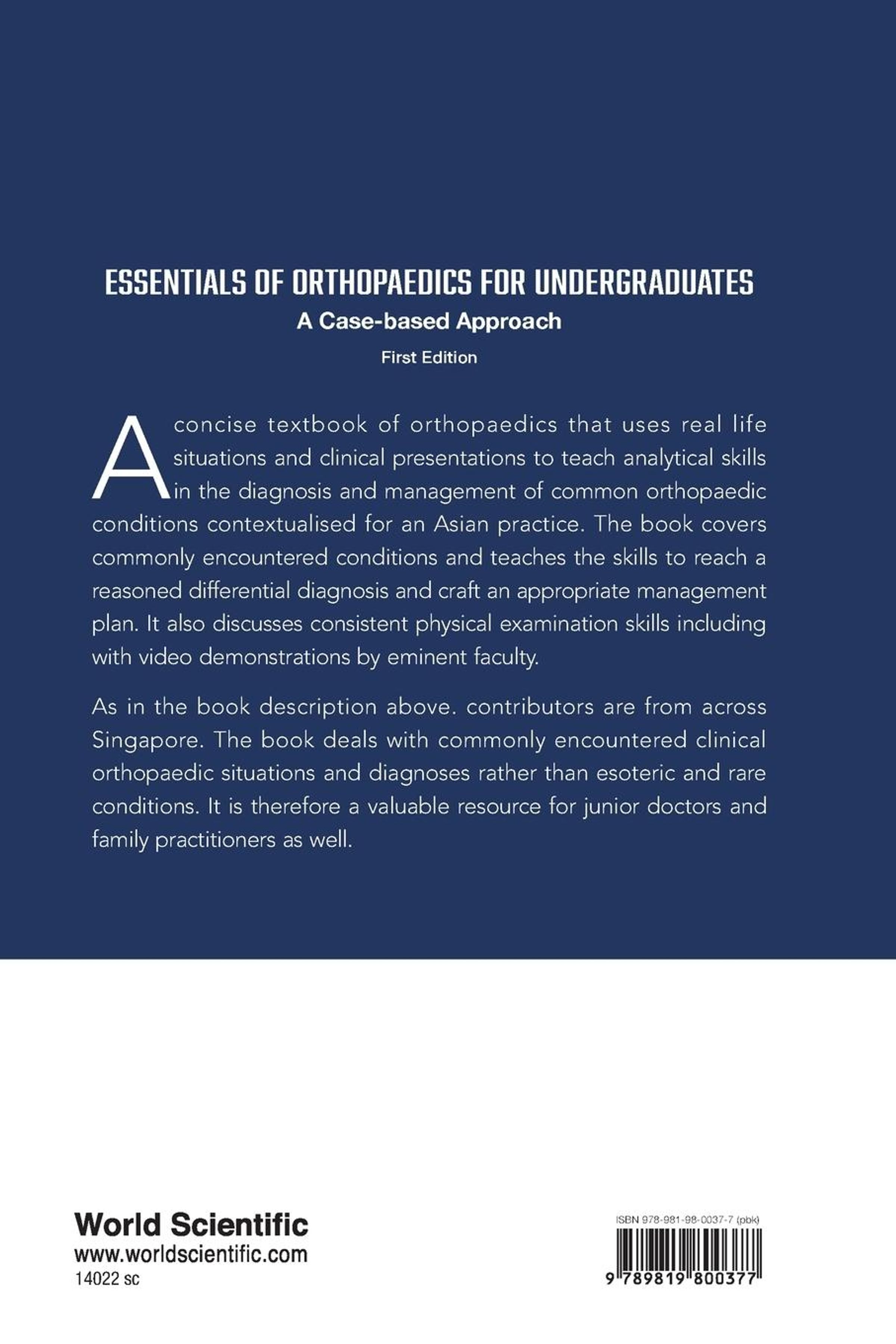A concise textbook of orthopaedics that uses real life situations and clinical presentations to teach analytical skills in the diagnosis and management of common orthopaedic conditions, contextualised for an Asian practice. The book covers commonly encountered conditions and teaches the skills to reach a reasoned differential diagnosis and craft an appropriate management plan. It also discusses consistent physical examination skills including with video demonstrations by eminent faculty. As in the book description above, contributors are from across Singapore. The book deals with commonly encountered clinical orthopaedic situations and diagnoses rather than esoteric and rare conditions. It is therefore a valuable resource for junior doctors and family practitioners as well.