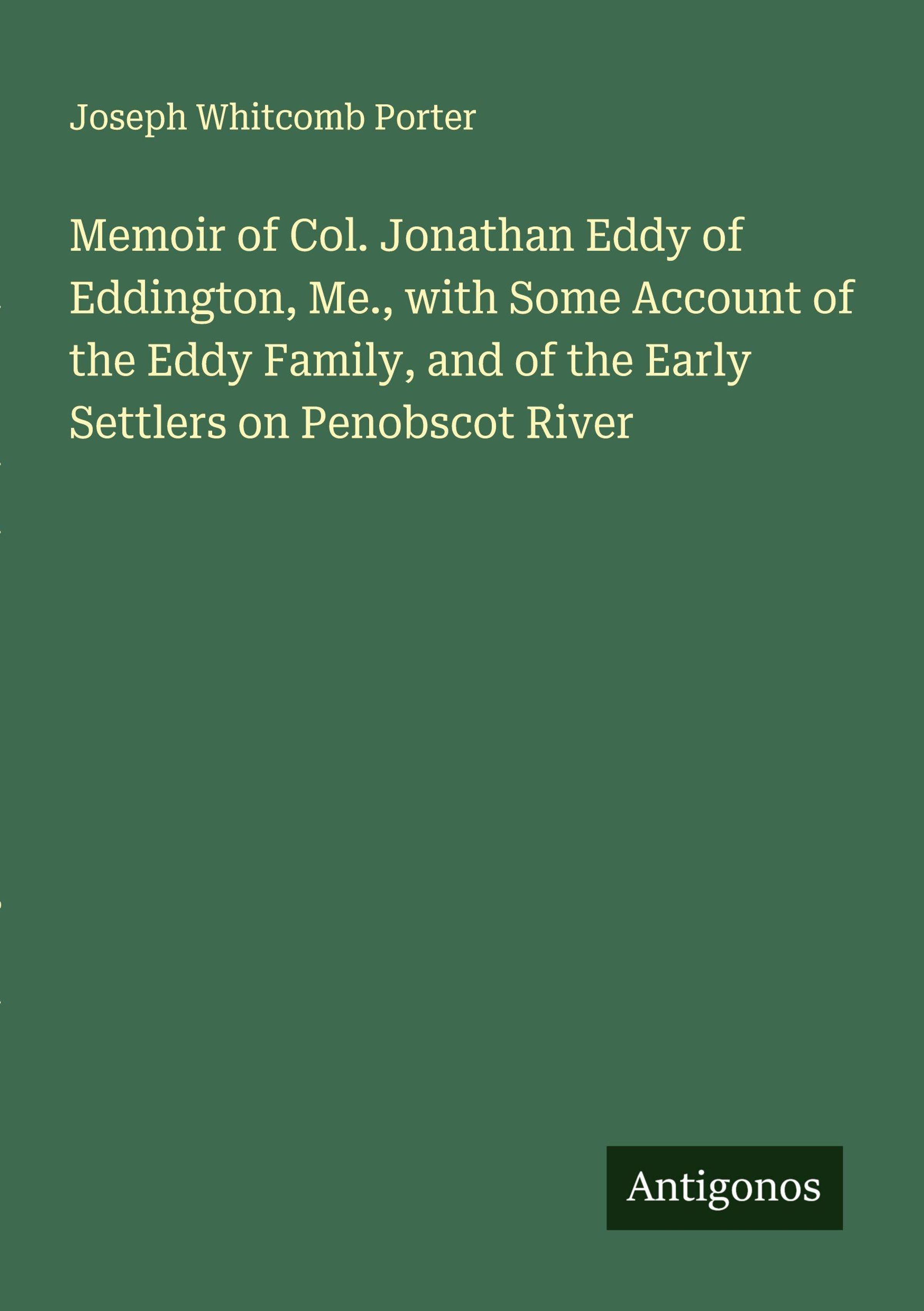 Joseph Whitcomb Porter: Memoir of Col. Jonathan Eddy of Eddington, Me., with Some Account of the Eddy Family,..., Kartoniert / Broschiert