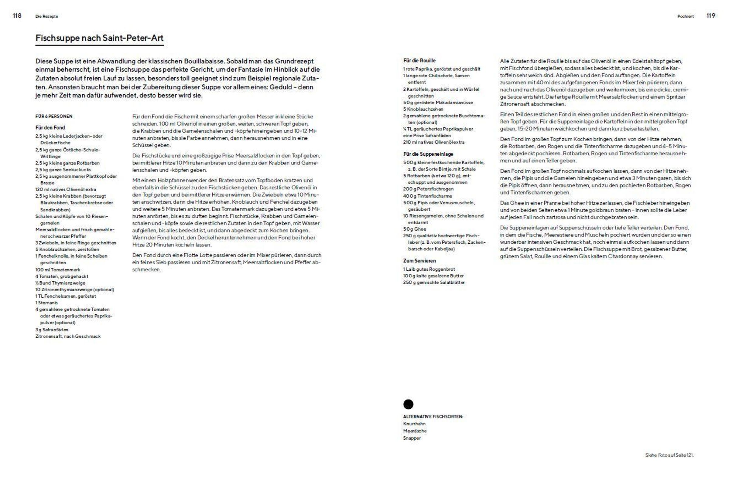 Vielfältige Rezepte für Dutzende Fischarten: geräucherte Meerforellen-Rillette, Schwertfisch-Saltimbocca, gegrillte Rotbarbe mit Seetang-Butter, Kabeljauleber auf Toast und die perfekten Fish&Chips