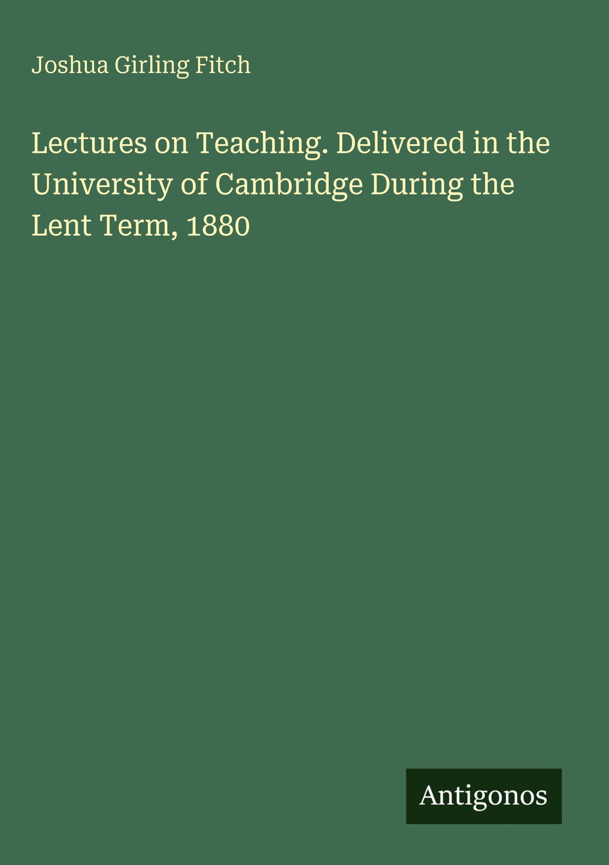 Joshua Girling Fitch: Lectures on Teaching. Delivered in the University of Cambridge During the Lent Term, 1880, Gebunden