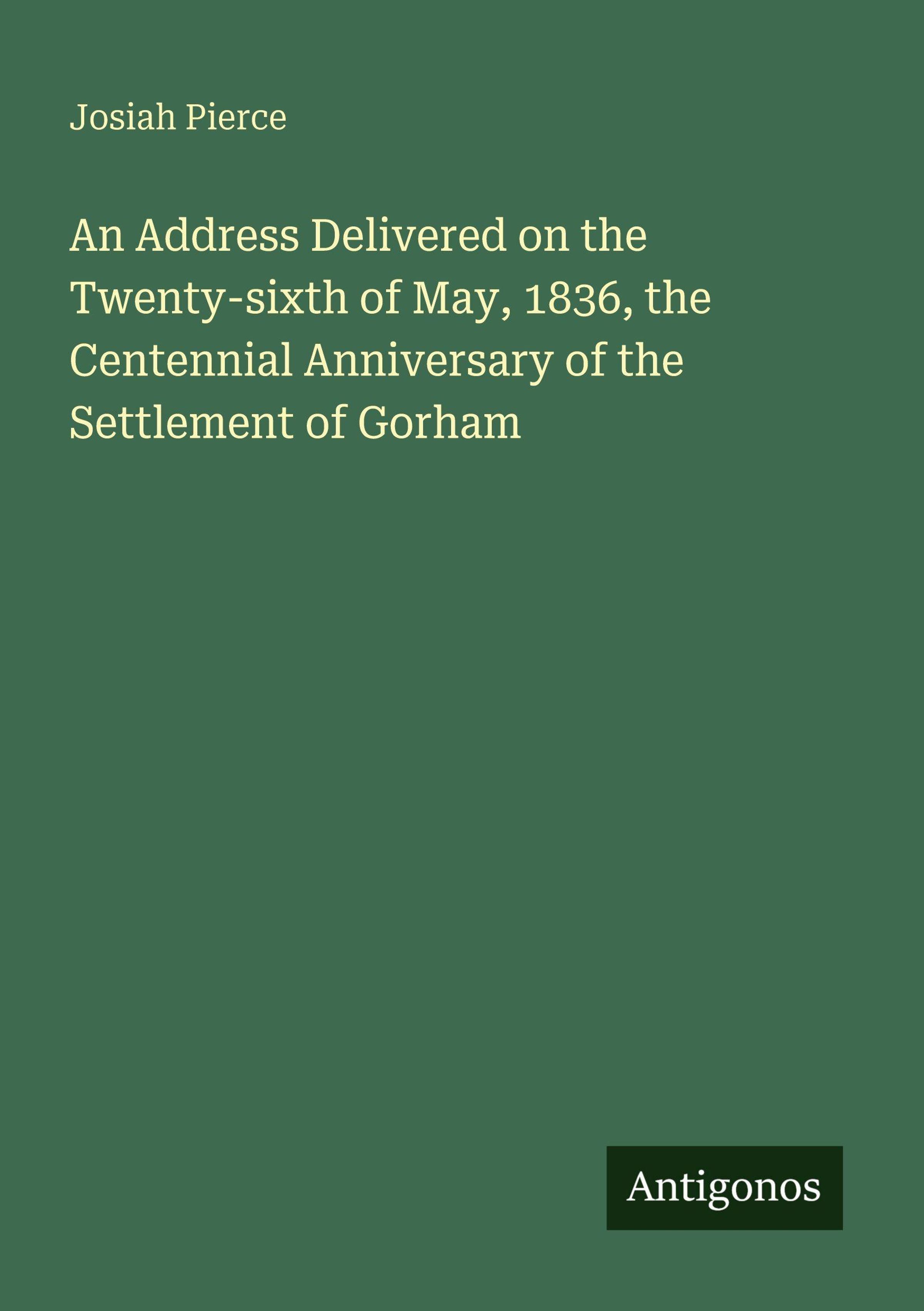 An Address Delivered on the Twenty-sixth of May, 1836, the Centennial Anniversary of the Settlement of Gorham