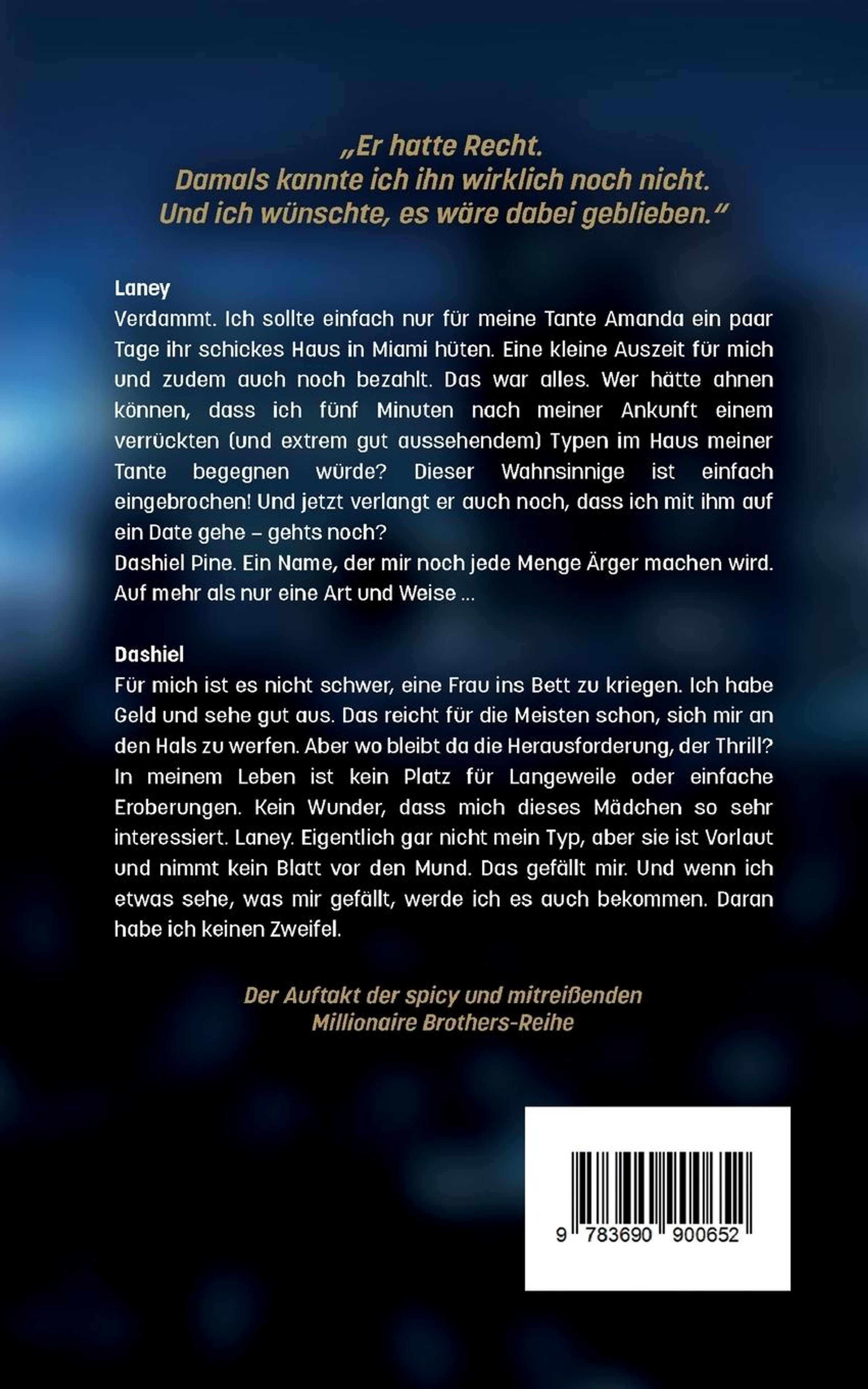 Für mich ist es nicht schwer, eine Frau ins Bett zu kriegen. Ich habe Geld und sehe gut aus. Das reicht für die Meisten schon, sich mir an den Hals zu werfen. Aber wo bleibt da die Herausforderung, der Thrill? In meinem Leben ist kein Platz für Langeweile oder einfache Eroberungen. Kein Wunder, dass mich dieses Mädchen so sehr interessiert. Laney. Eigentlich gar nicht mein Typ, aber sie ist Vorlaut und nimmt kein Blatt vor den Mund. Das gefällt mir. Und wenn ich etwas sehe, was mir gefällt, werde ich es auch bekommen. Daran habe ich keinen Zweifel.