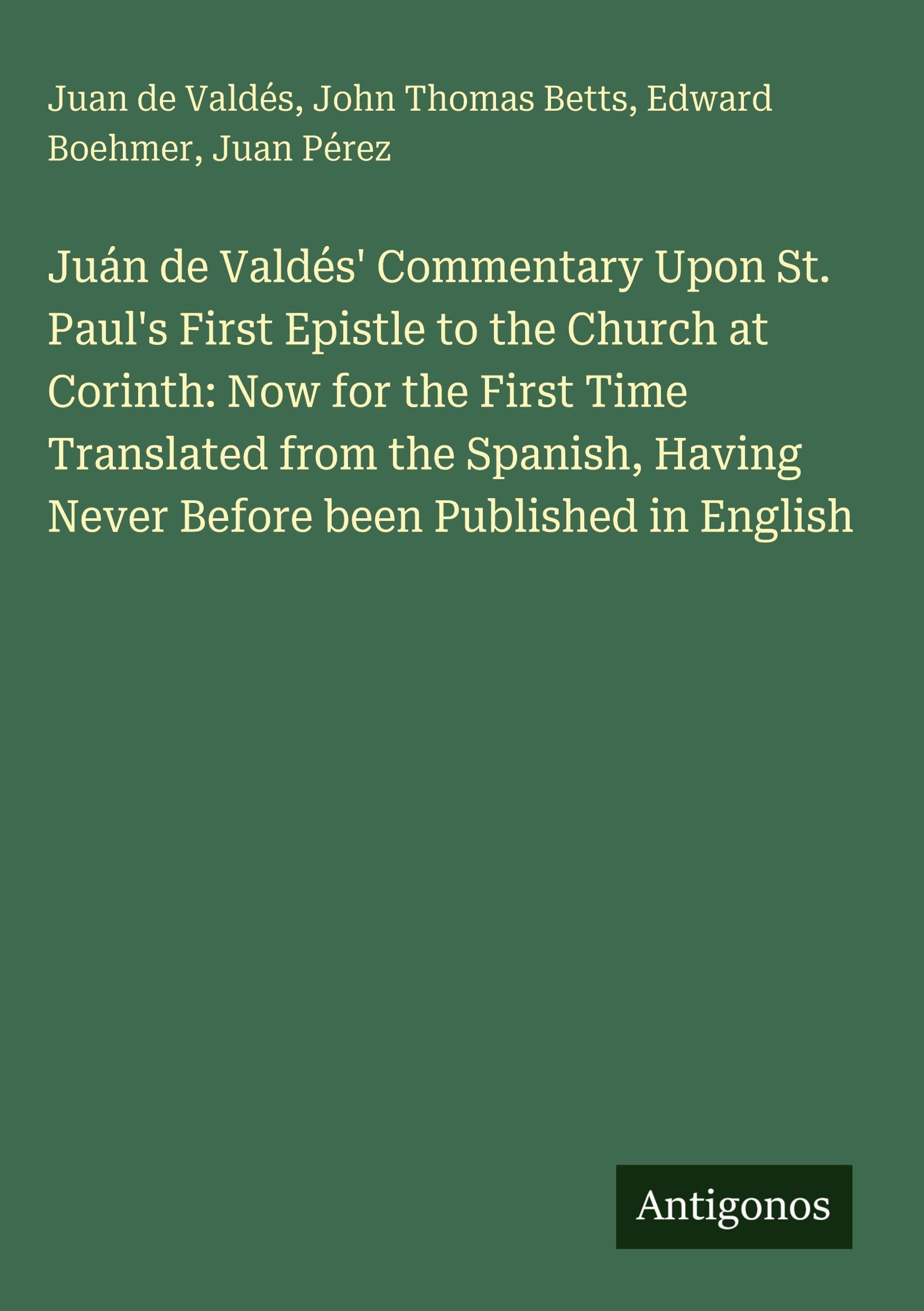 Juán de Valdés' Commentary Upon St. Paul's First Epistle to the Church at Corinth: Now for the First Time Translated from the Spanish, Having Never Before been Published in English