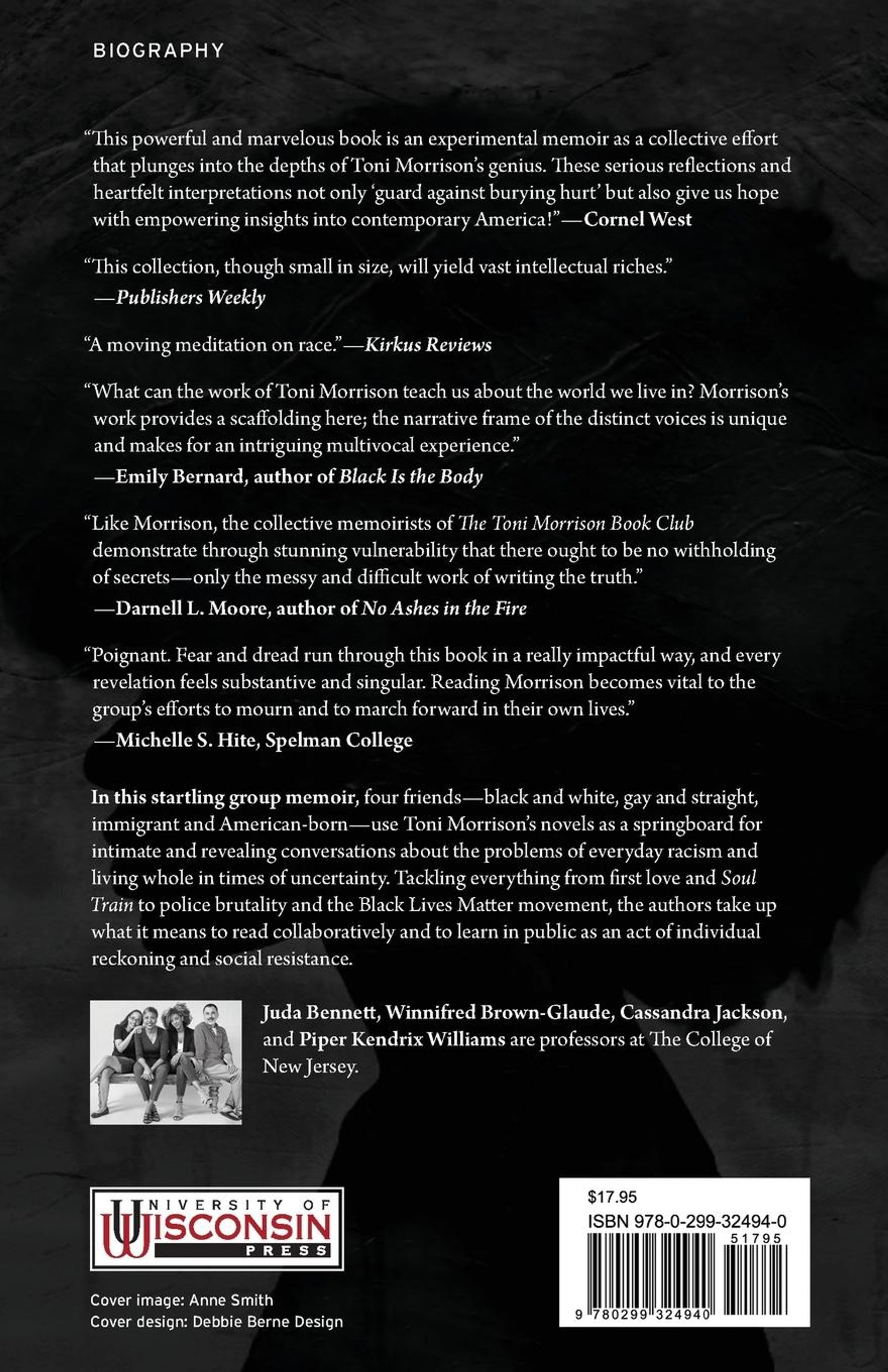 Four friends--black and white, gay and straight, immigrant and American-born--offer a radical vision for book clubs as sites of self-discovery and communal healing. The Toni Morrison Book Club insists that we make space to find ourselves in fiction and turn to Morrison as a spiritual guide to our most difficult thoughts and ideas about American literature and life.