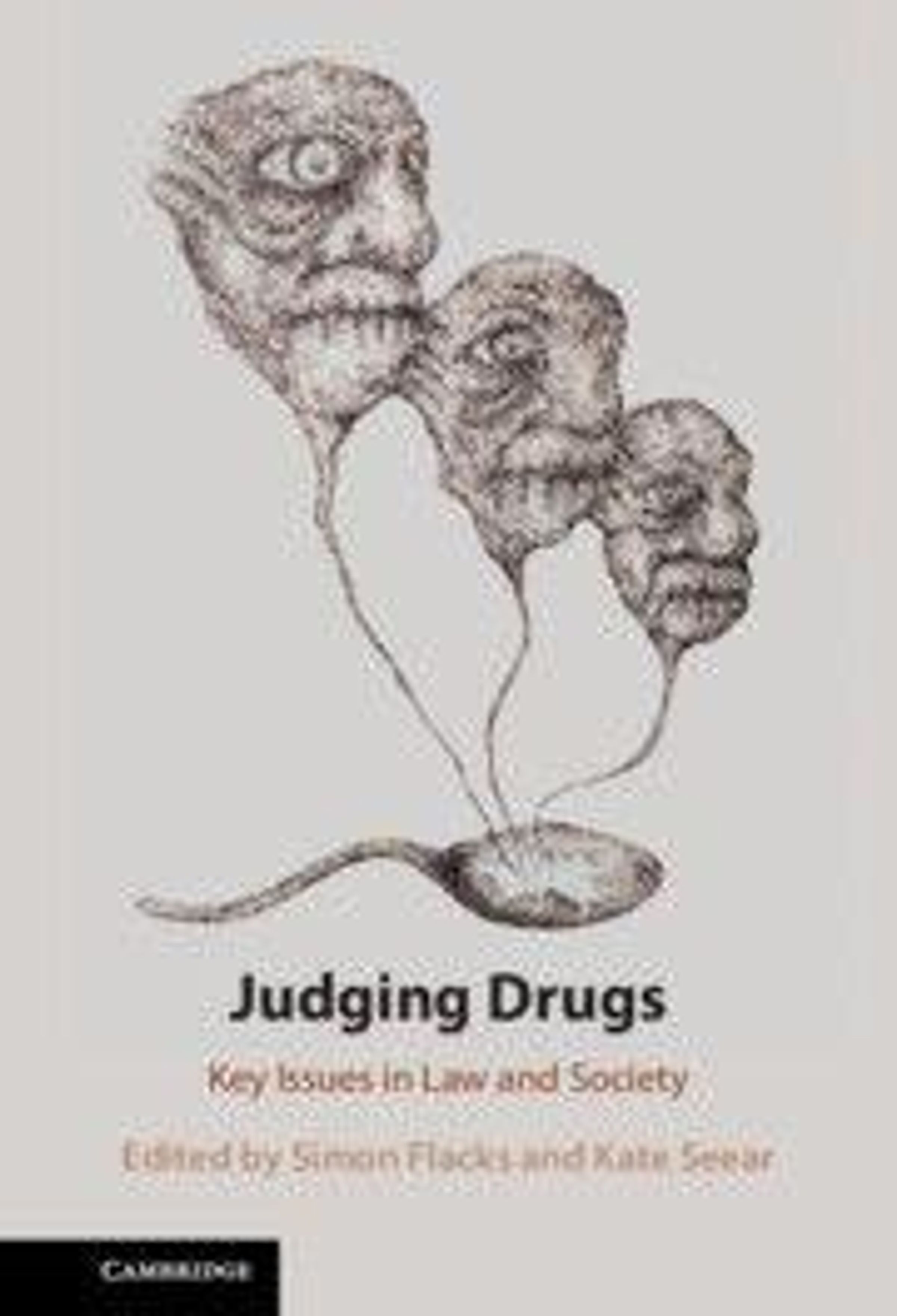 "Judging Drugs: Key Issues in Law and Society" steht unter drei grotesken Gesicht-Ballons. Herausgeber: Simon Flacks, Kate Seear., Buch