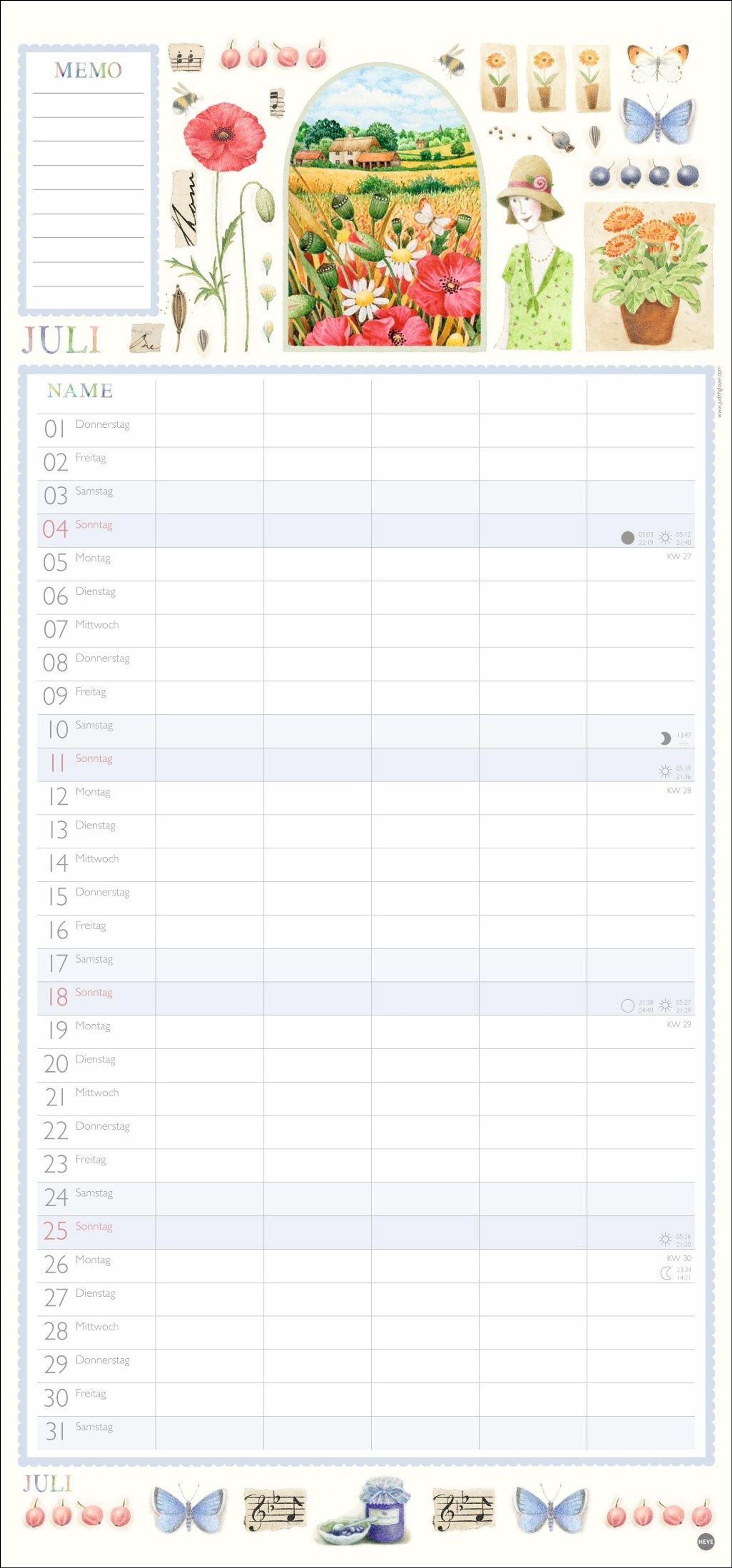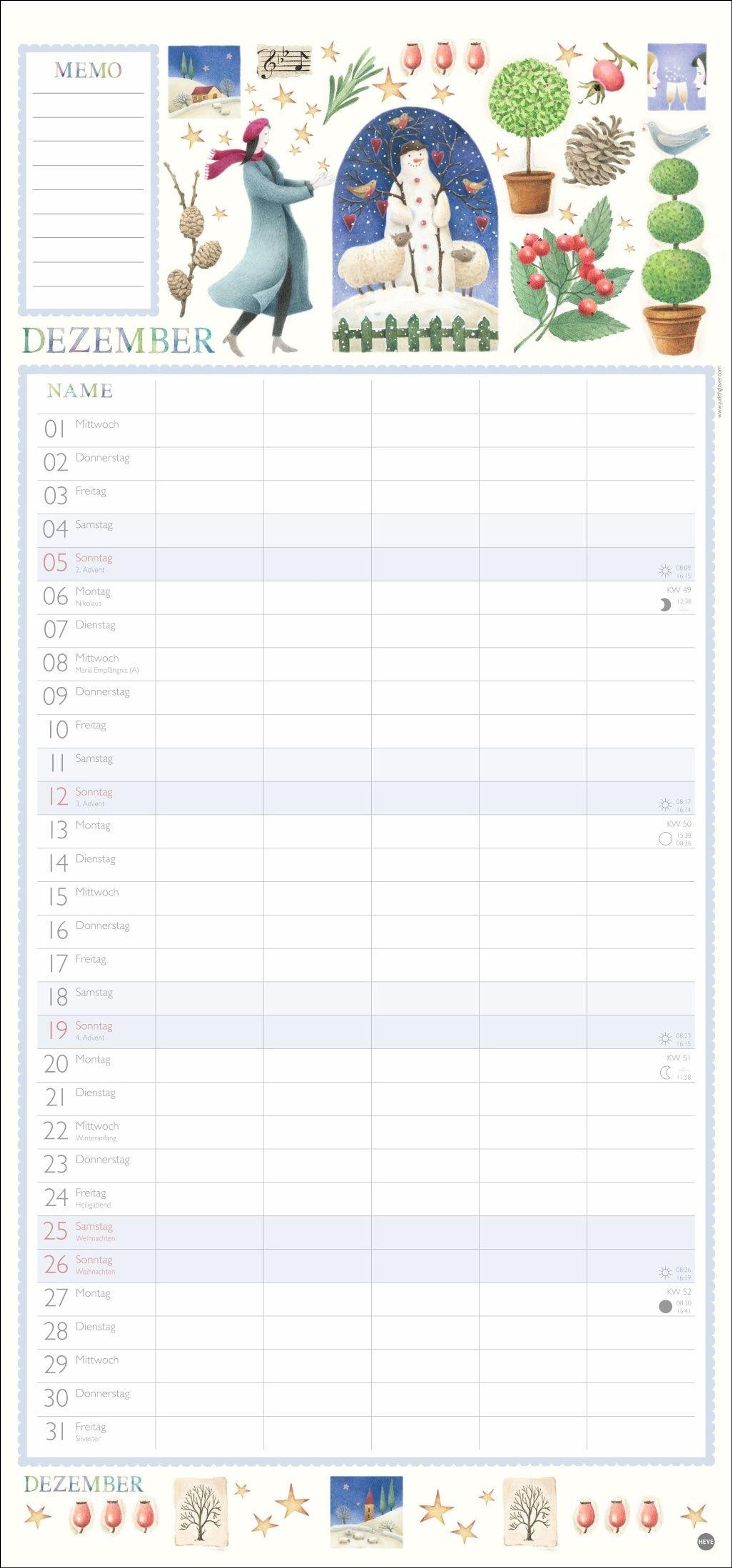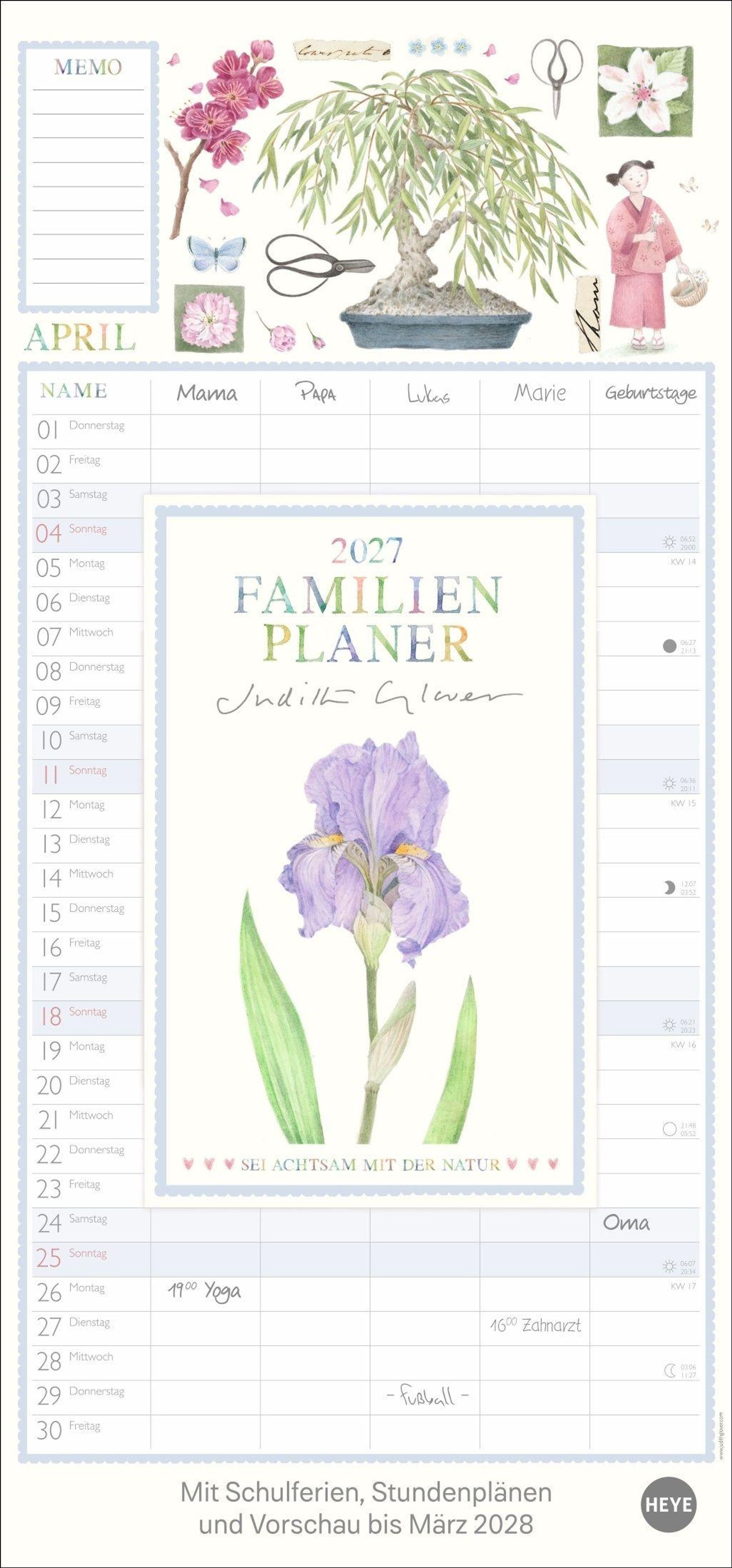 - Familienkalender mit 5 Spalten. Liebevoll illustrierter Familien-Wandkalender mit Schulferien. Hübscher Wandplaner 2027.