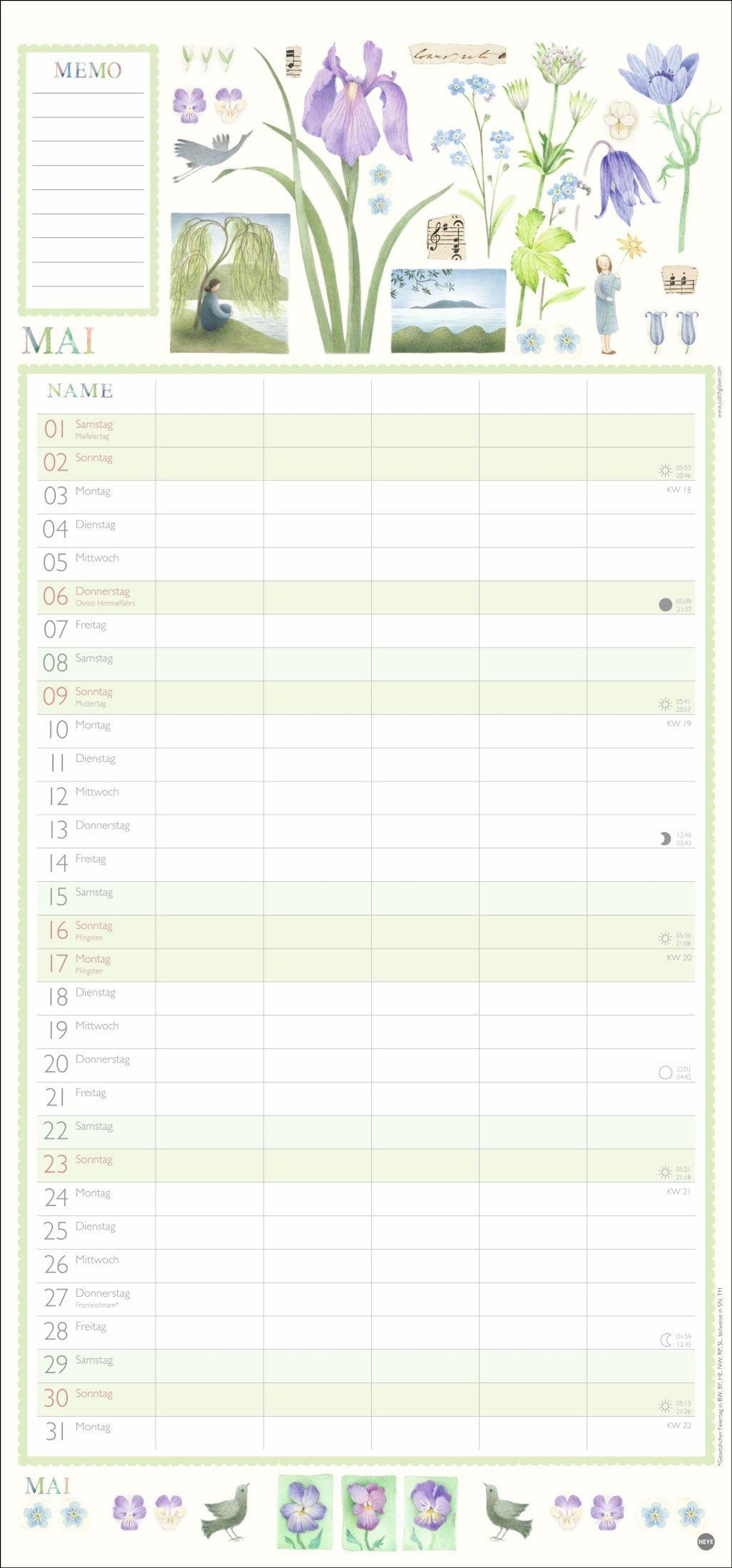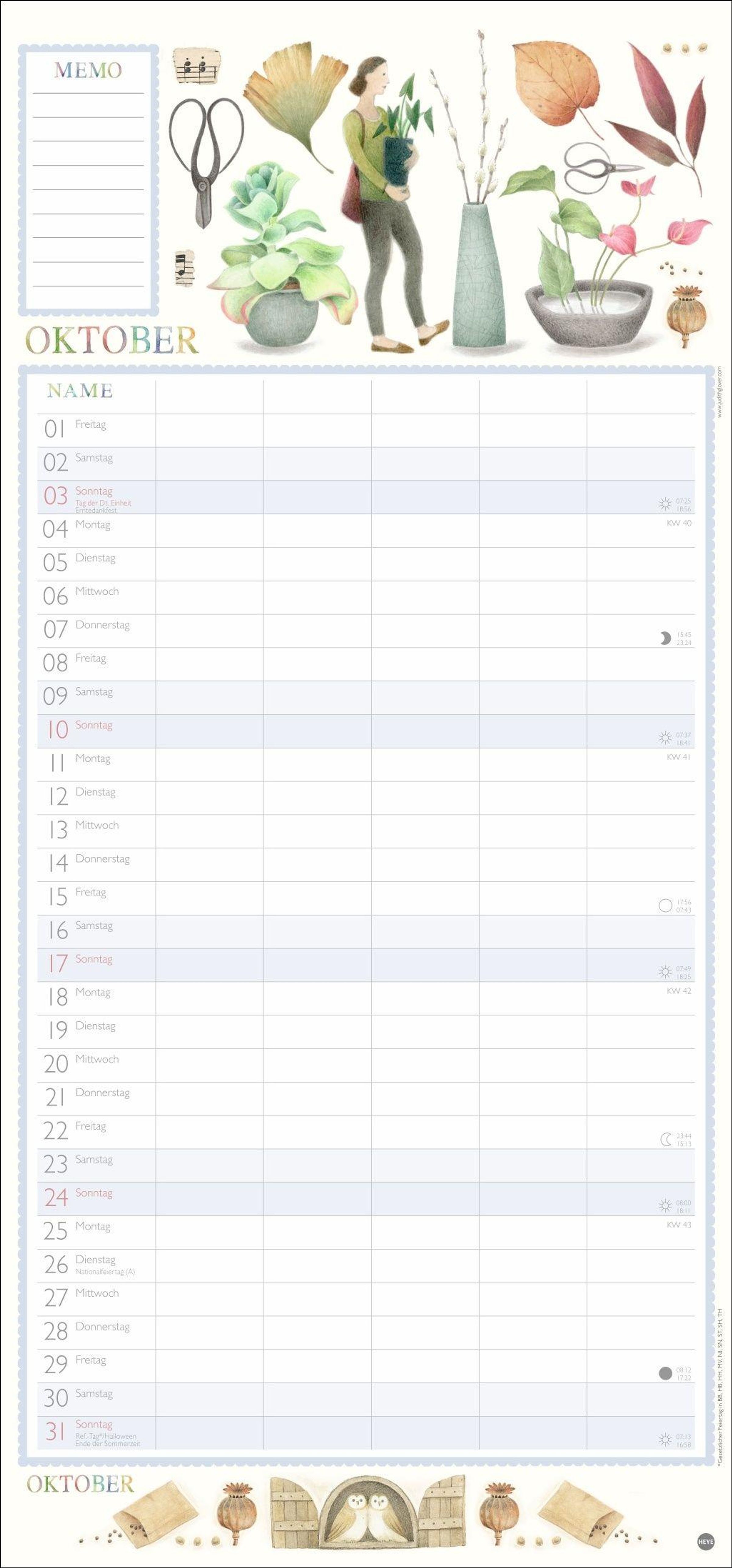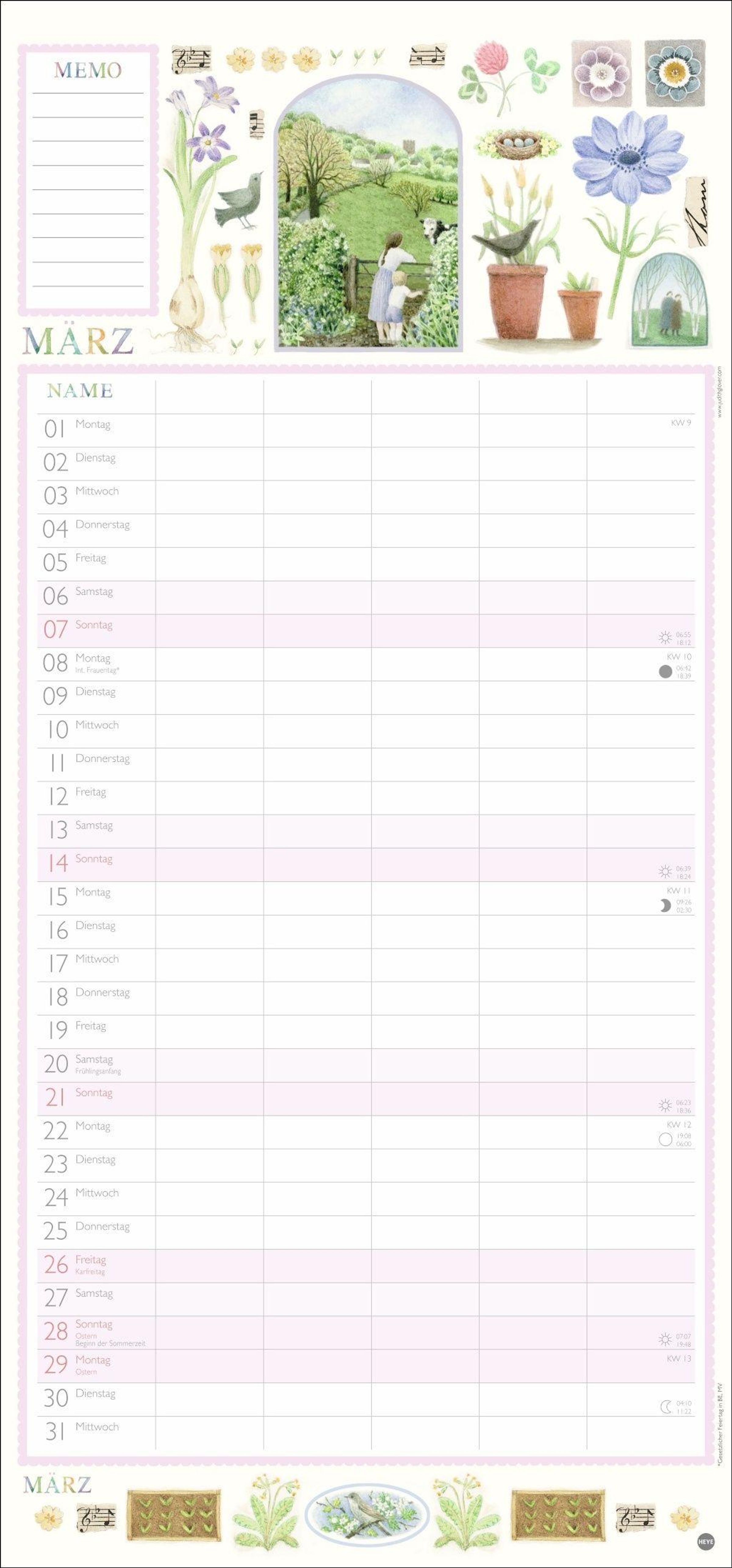- Familienkalender mit 5 Spalten. Liebevoll illustrierter Familien-Wandkalender mit Schulferien. Hübscher Wandplaner 2027.