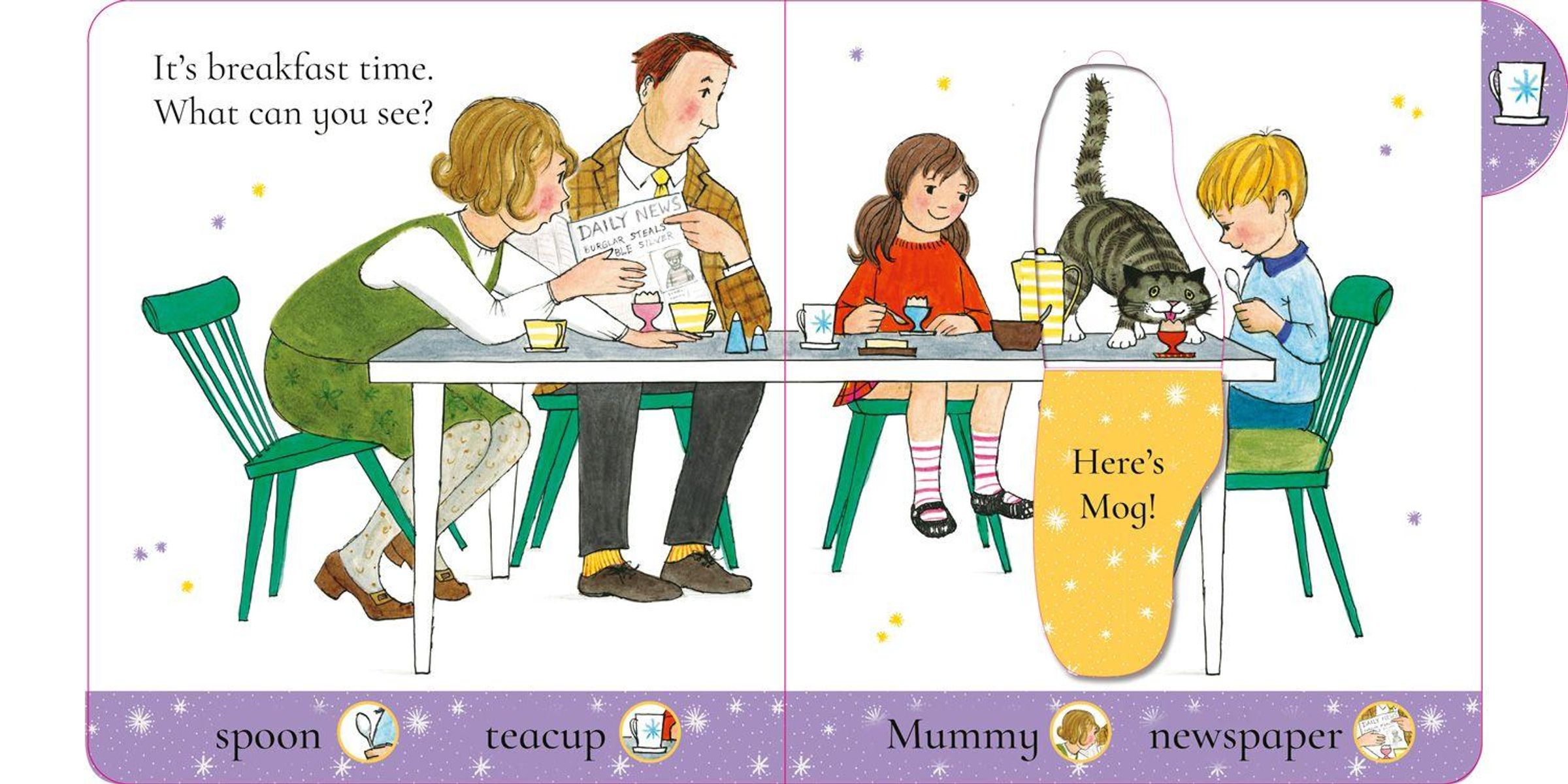This peekaboo board book is the perfect introduction to everyone's favourite cat, Mog, created by beloved writer Judith Kerr, author of The Tiger Who Came to Tea.