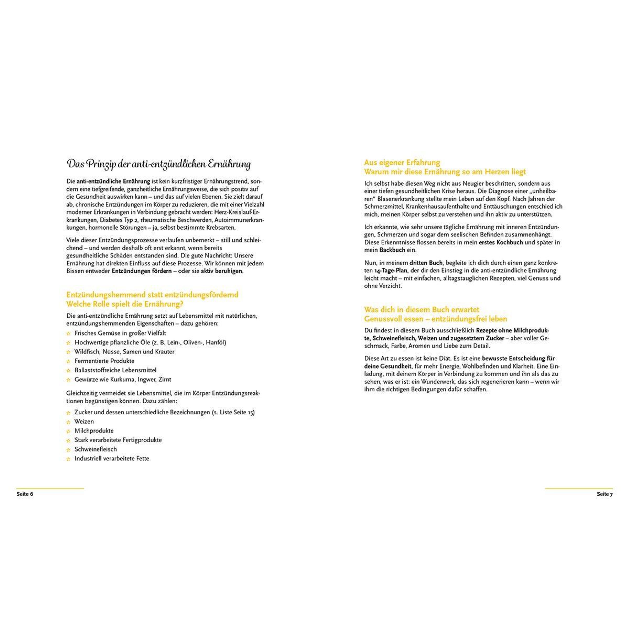 Judith, selbst betroffen von einer chronischen, vermeintlich unheilbaren Erkrankung, hat durch eine konsequent anti-entzündliche Ernährung ihren Weg zurück ins Leben gefunden - mit mehr Leichtigkeit, Energie und Lebensfreude als je zuvor. Mit ihrer persönlichen Geschichte und viel alltagstauglicher Erfahrung begleitet sie dich durch einen 14-Tage-Plan voller kluger Impulse und liebevoller Routinen. Dieser Plan hilft dir, bewusste Entscheidungen für dich und deinen Körper zu treffen: egal, ob du Beschwerden lindern, dich leichter fühlen oder dein Wohlbefinden langfristig stärken möchtest. Dieses Buch ist eine Einladung, deinen Körper bewusst zu unterstützen und neue Kraft zu schöpfen. Hier findest du: