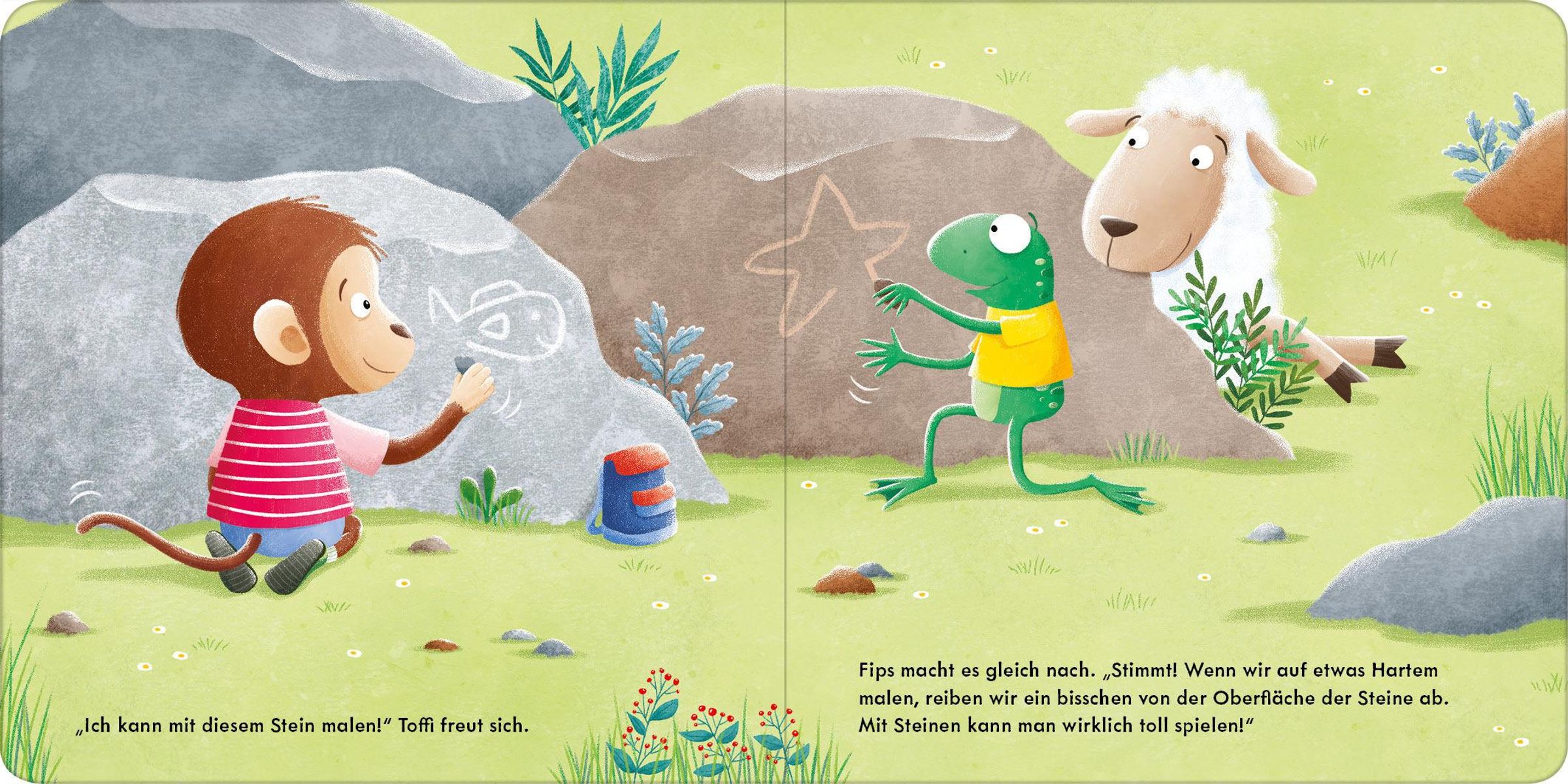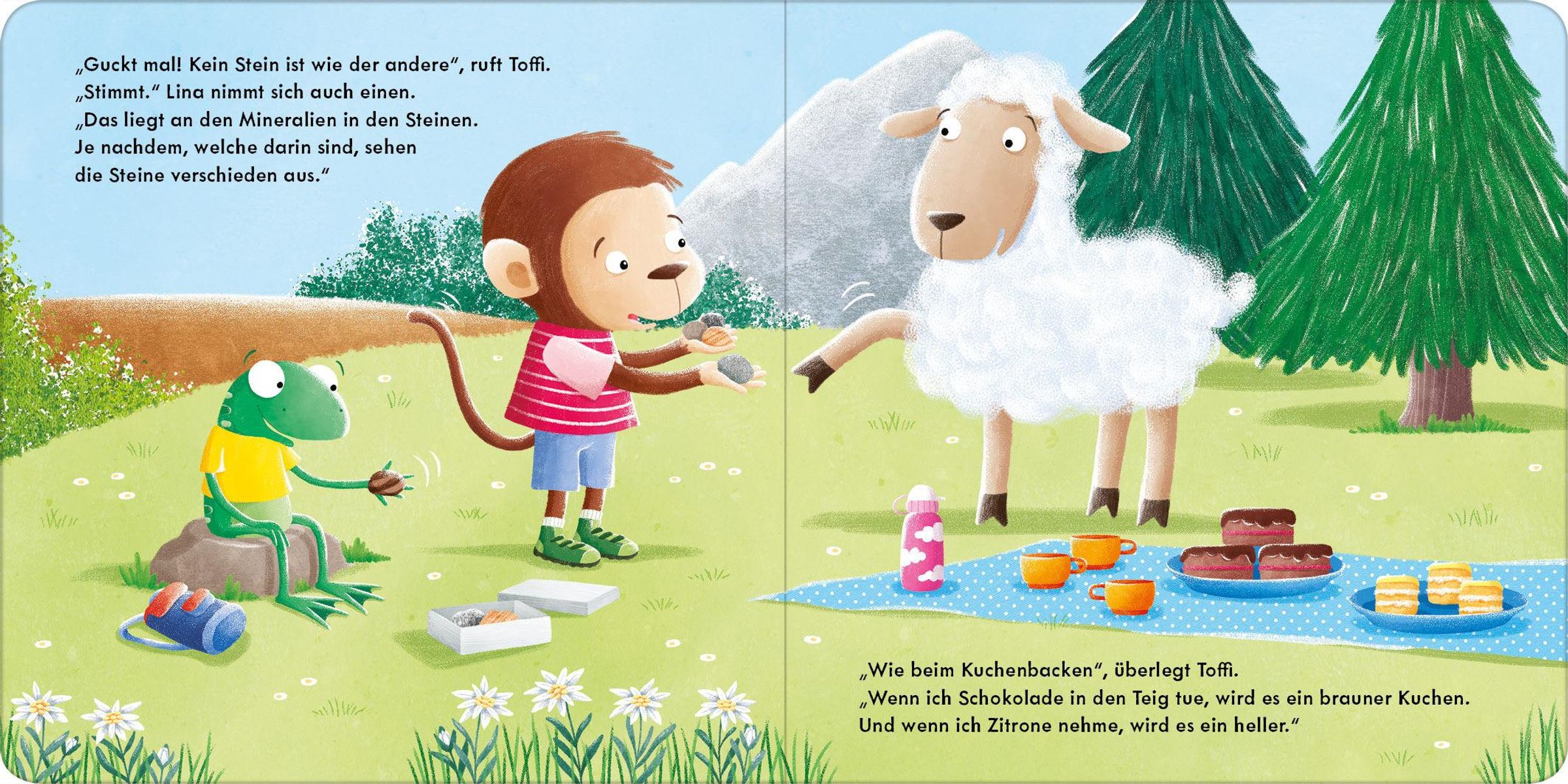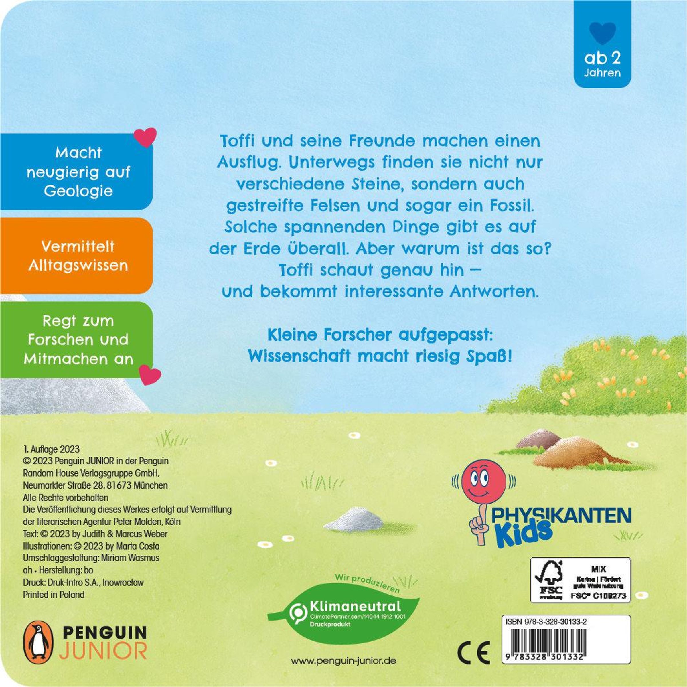 Toffi und seine Freunde machen einen Ausflug. Unterwegs finden sie nicht nur verschiedene Steine, sondern auch gestreifte Felsen und sogar ein Fossil. Solche spannenden Dinge gibt es auf der Erde überall. Aber warum ist das so? Toffi schaut genau hin - und bekommt interessante Antworten.