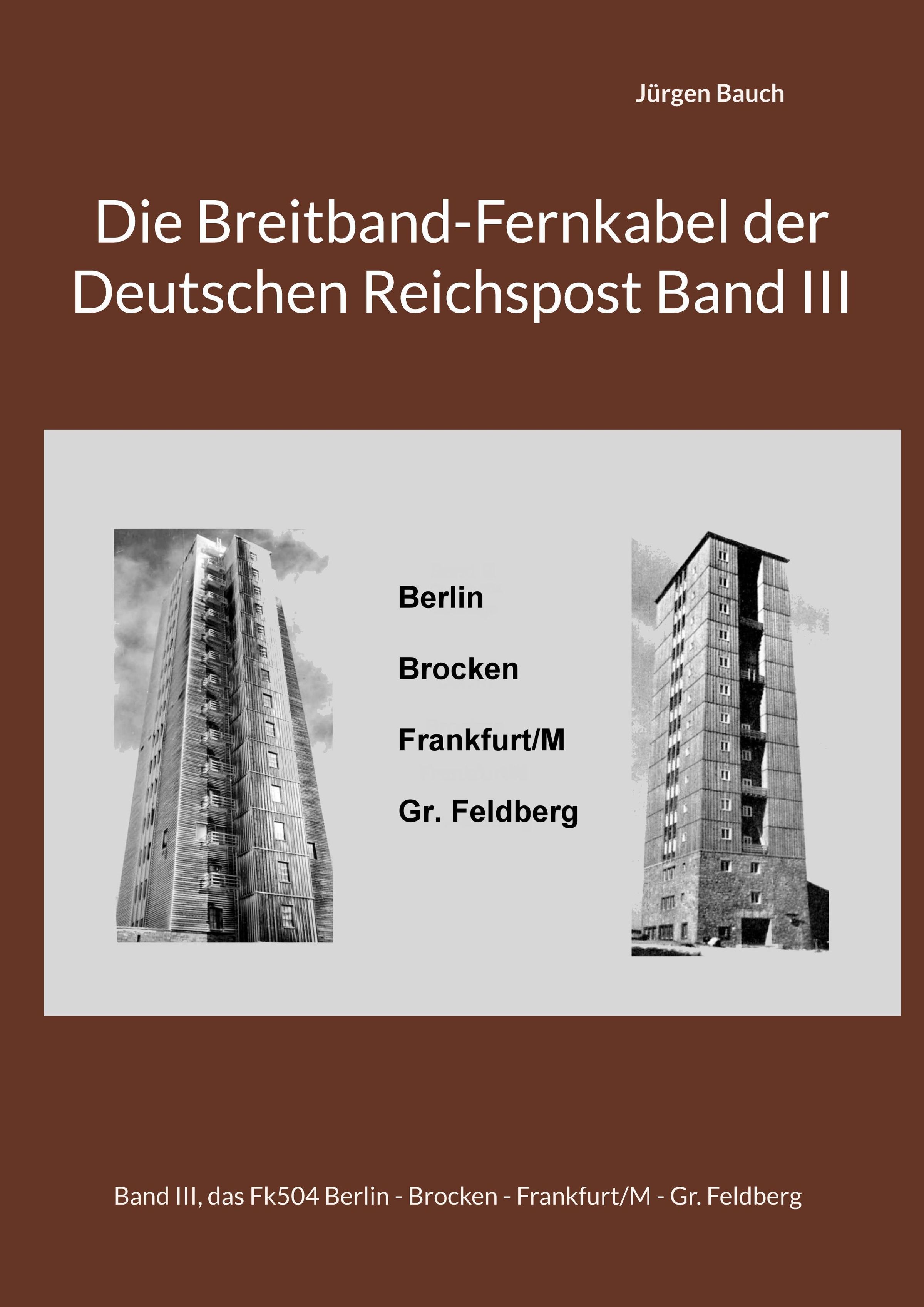 Das Breitband Fernkabel Fk504 war das erste in der Welt, dass 2 Fernsehtürme (Brocken und Gr. Feldberg) mit einem Fernsehsignal versorgen sollte. Zusätzlich sollten über dieses Kabel noch 200 Telefongespräche auf dem Frequenzband bis 1 MHz übertragen werden. In diesem Buch, Band III das Fk504, 3.Auflage, wird versucht ein Überblick über die Planung und Realisierung eines zur damaligen Zeit einmaligen Projektes zu geben. Besondere Punkte sind den Fernseh-Türmen, der Notstromversorgung und auch der Nutzung des Fernkabels nach 1945 gewidmet. Folgende Bücher zum Thema Breitband-Fernkabel der DRP wurden noch veröffentlicht. Band II, das Breitband-Fernkabel Fk503 Berlin-Hamburg, Auflage 3 (veröffentlicht 2026) Band I, das Breitband-Fernkabel Fk501 / 502 Berlin-Leipzig-München, Auflage 2 (veröffentlicht 2026) Band IV, das Breitband-Fernkabel FK510 München-Salzburg-Obersalzberg-Wien (veröffentlicht 2026)