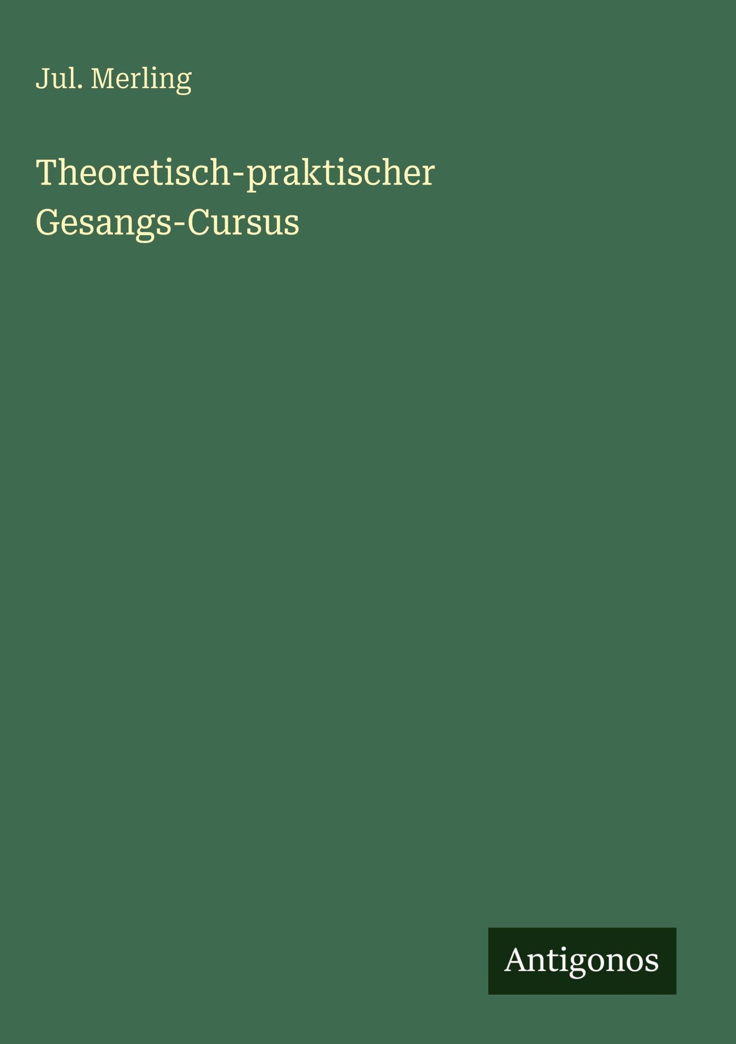 Text: "Jul. Merling. Theoretisch-praktischer Gesangs-Cursus." Unten steht "Antigonos". Hintergrund: Dunkelgrün., Buch