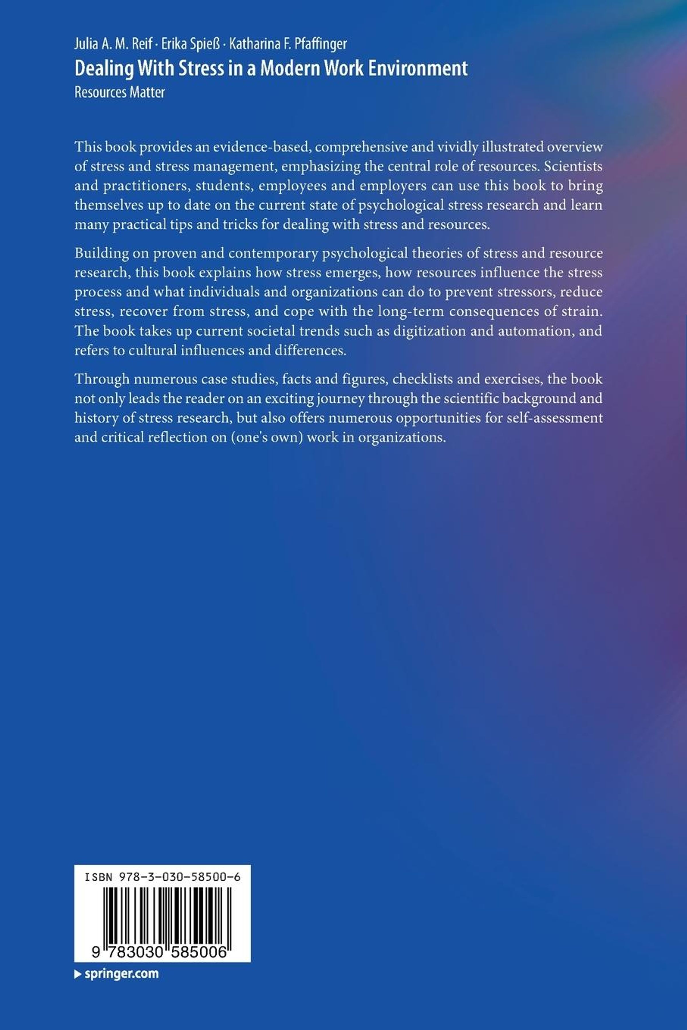 This book provides an evidence-based, comprehensive and vividly illustrated overview of stress and stress management, emphasizing the central role of resources. Scientists and practitioners, students, employees and employers can use this book to bring themselves up to date on the current state of psychological stress research and learn many practical tips and tricks for dealing with stress and resources. Building on proven and contemporary psychological theories of stress and resource research, this book explains how stress emerges, how resources influence the stress process and what individuals and organizations can do to prevent stressors, reduce stress, recover from stress, and cope with the long-term consequences of strain. The book takes up current societal trends such as digitization and automation, and refers to cultural influences and differences.