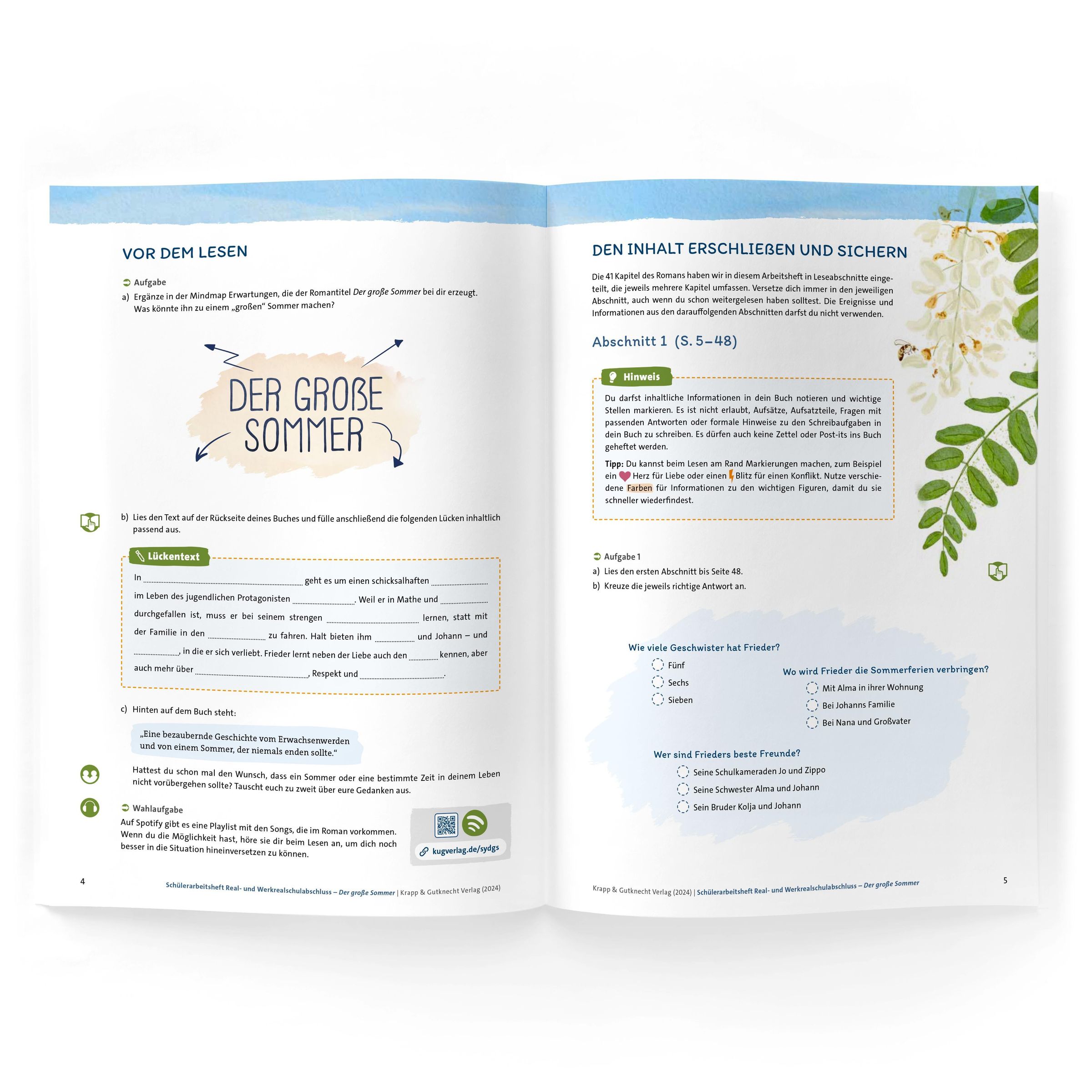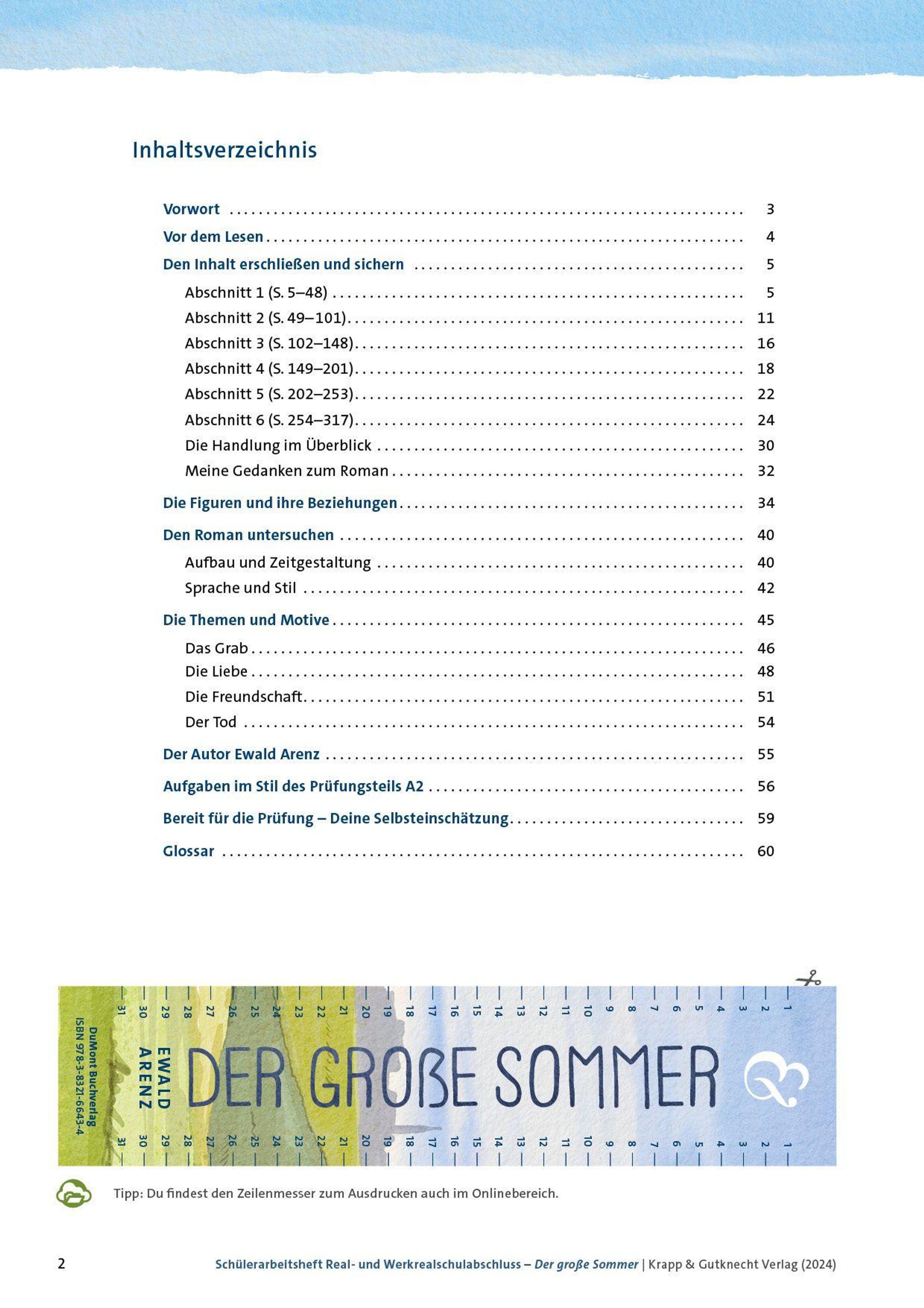 Der große Sommer - Ewald Arenz - Schülerarbeitsheft - Realschule und Werkrealschule