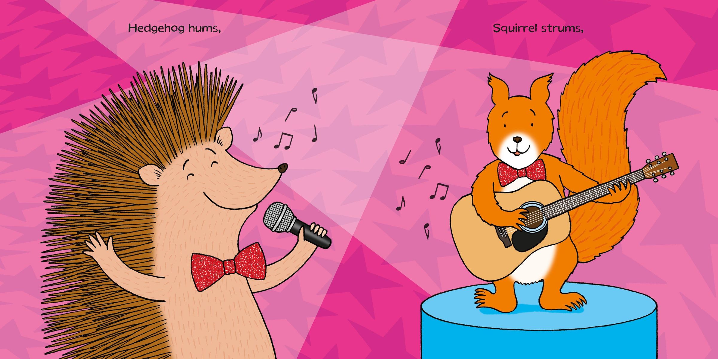 Koala's playing his flute, Badger's bashing away on the drums and Squirrel's strumming on the guitar. Even the smallest toddler will enjoy the wonderfully silly animal antics in this book, so join in and sing and dance along - you've never been to a gig like it!