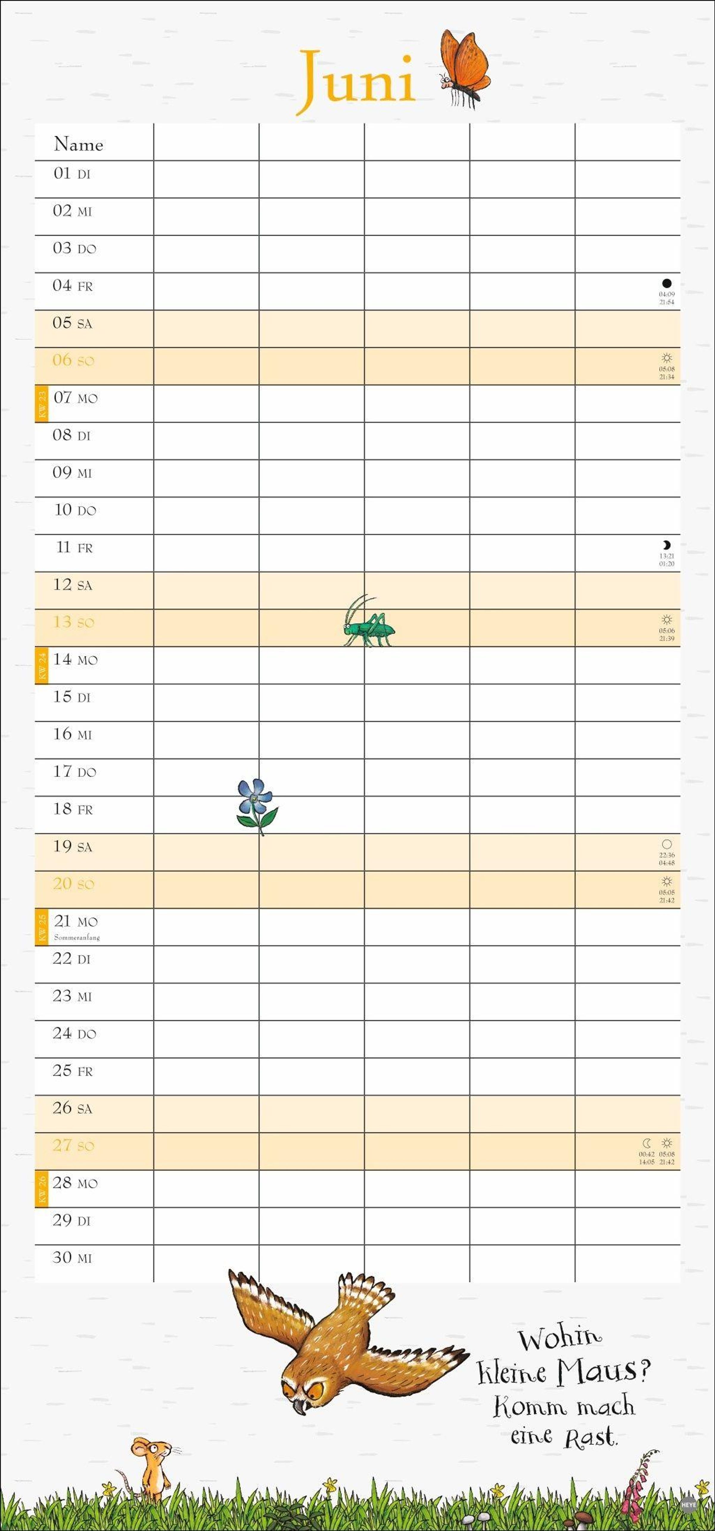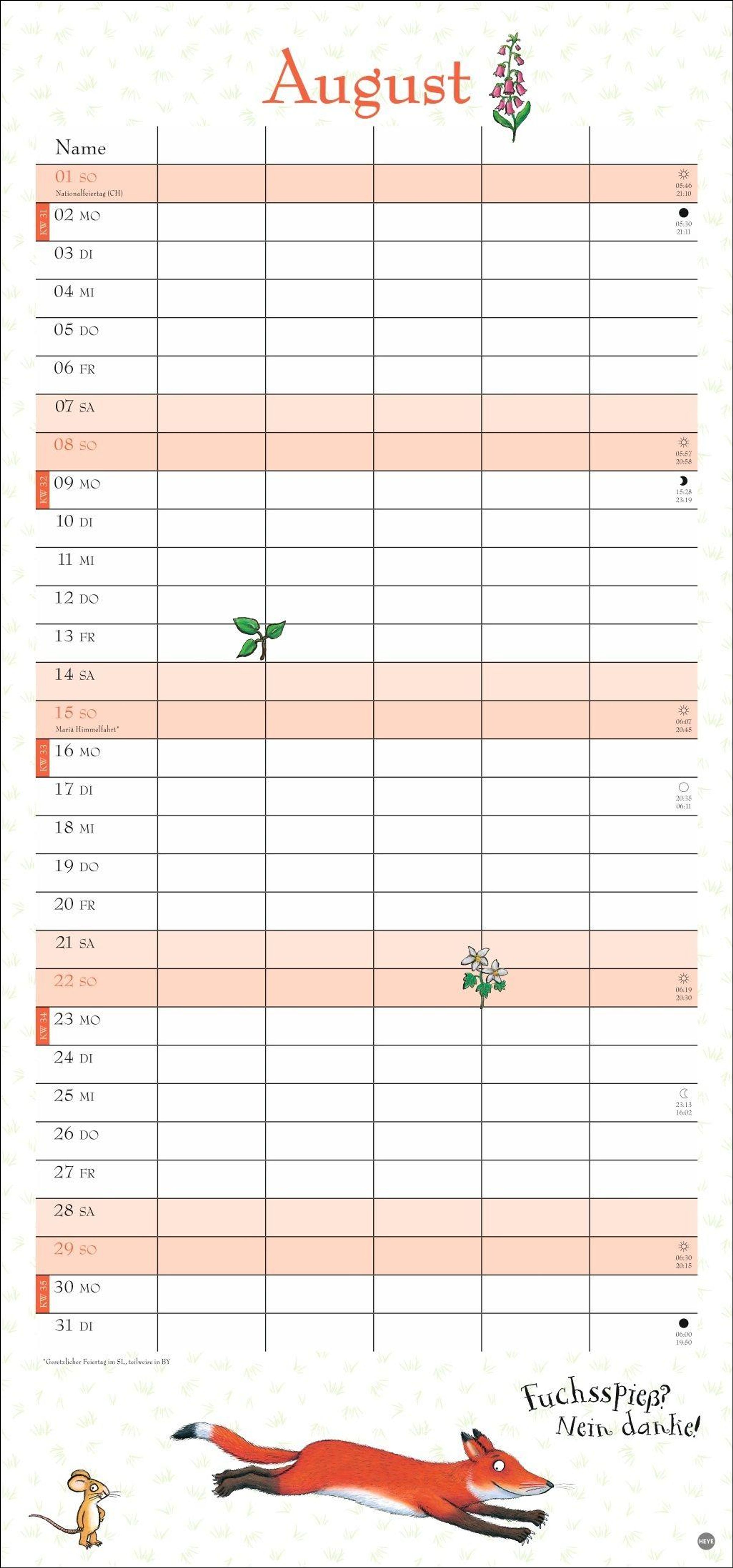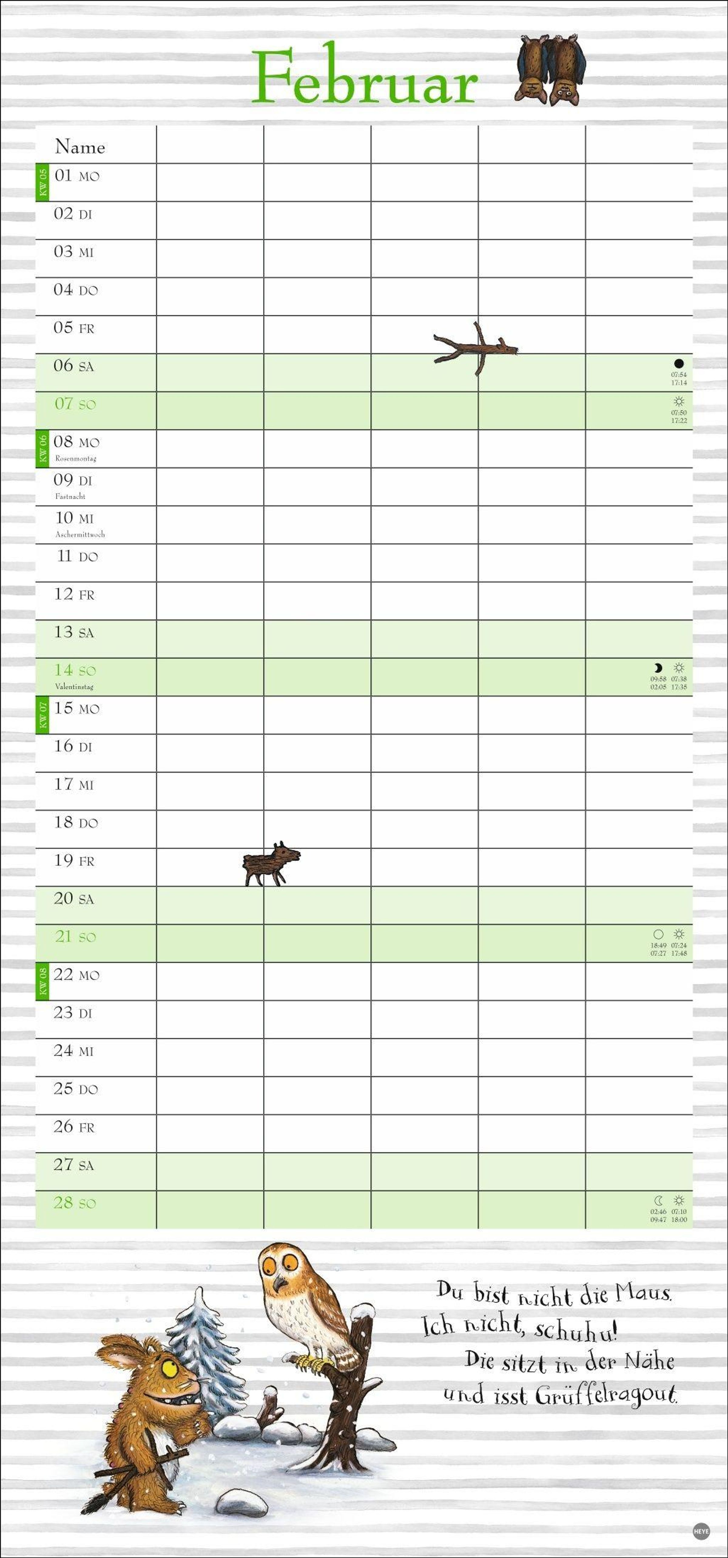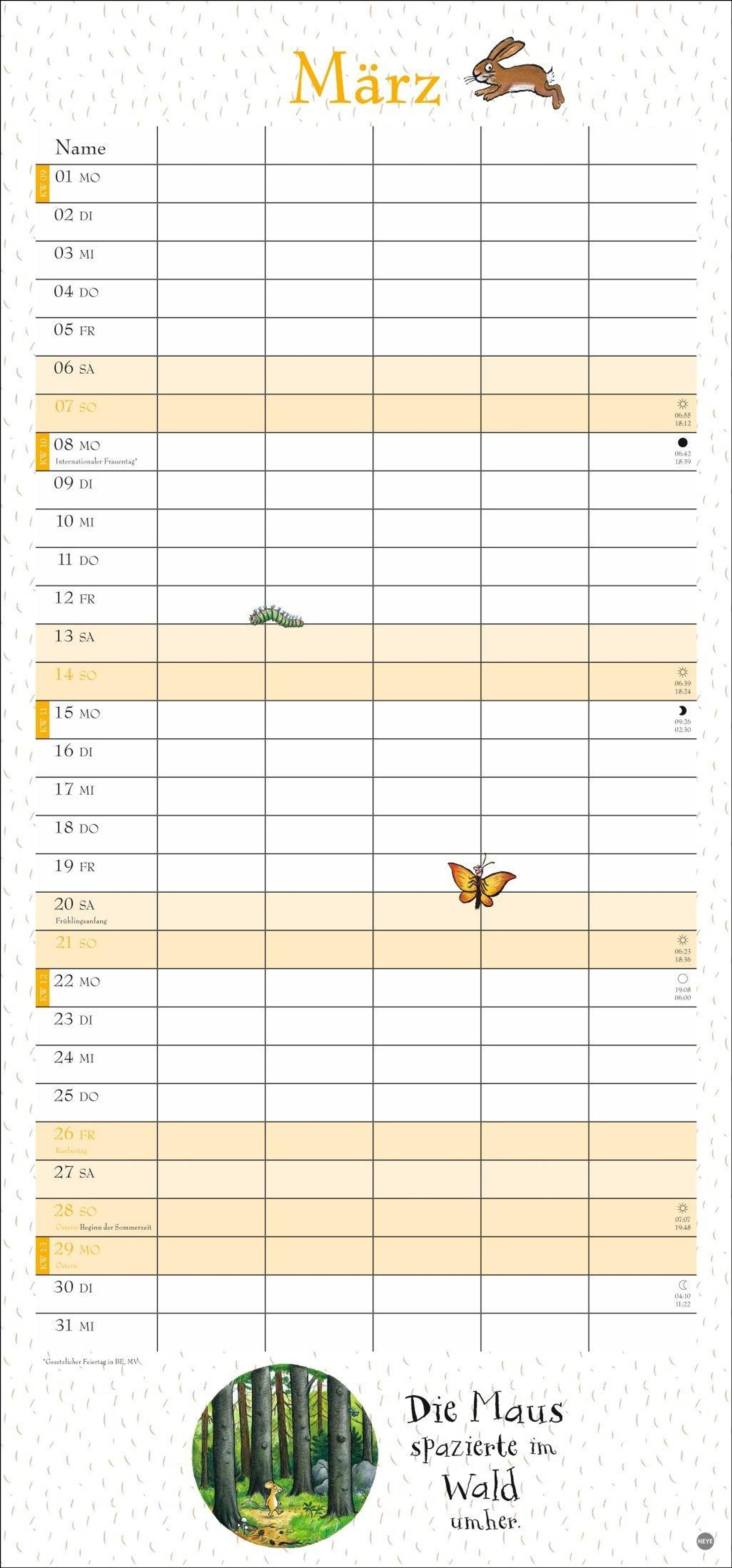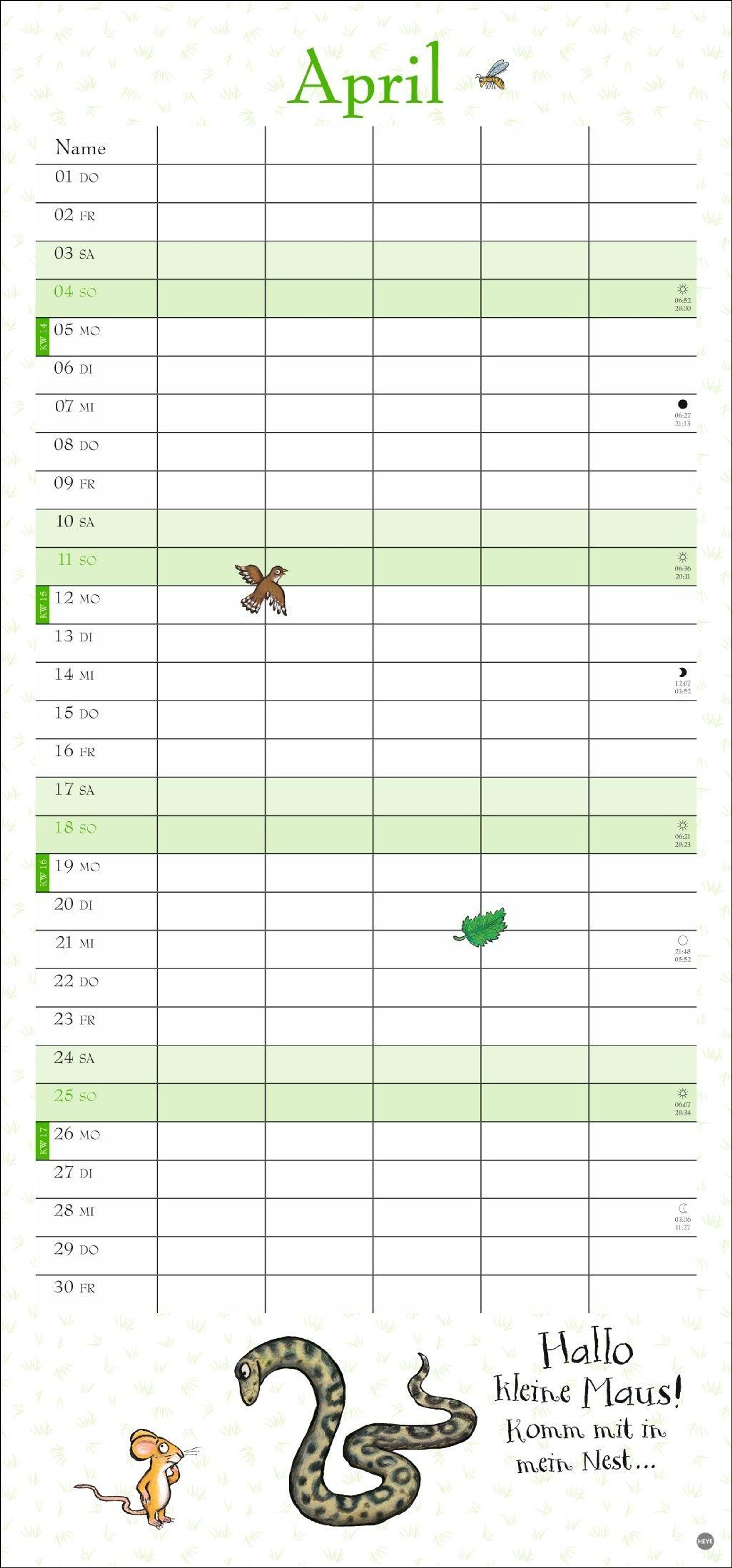 - Witziger Kalender mit den bekannten Figuren aus dem Kinderbuch-Klassiker. Hochkant-Format: Langer Kalender mit 5 Spalten für Übersicht und Planung.
