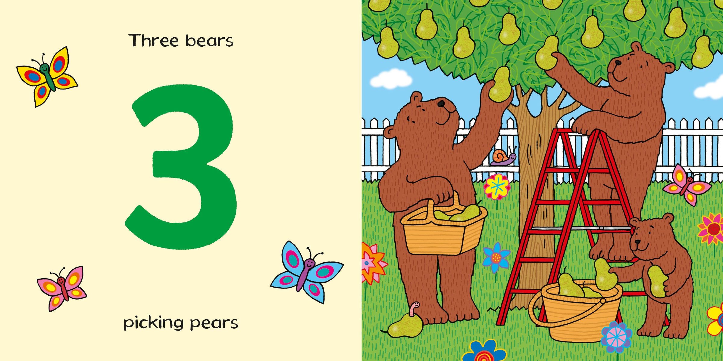 All the animals are busy lending a hand in the garden in this lively numbers book! The parrots are pulling up carrots, the bears are picking pears and a swarm of bees are pruning the trees with their miniature shears.