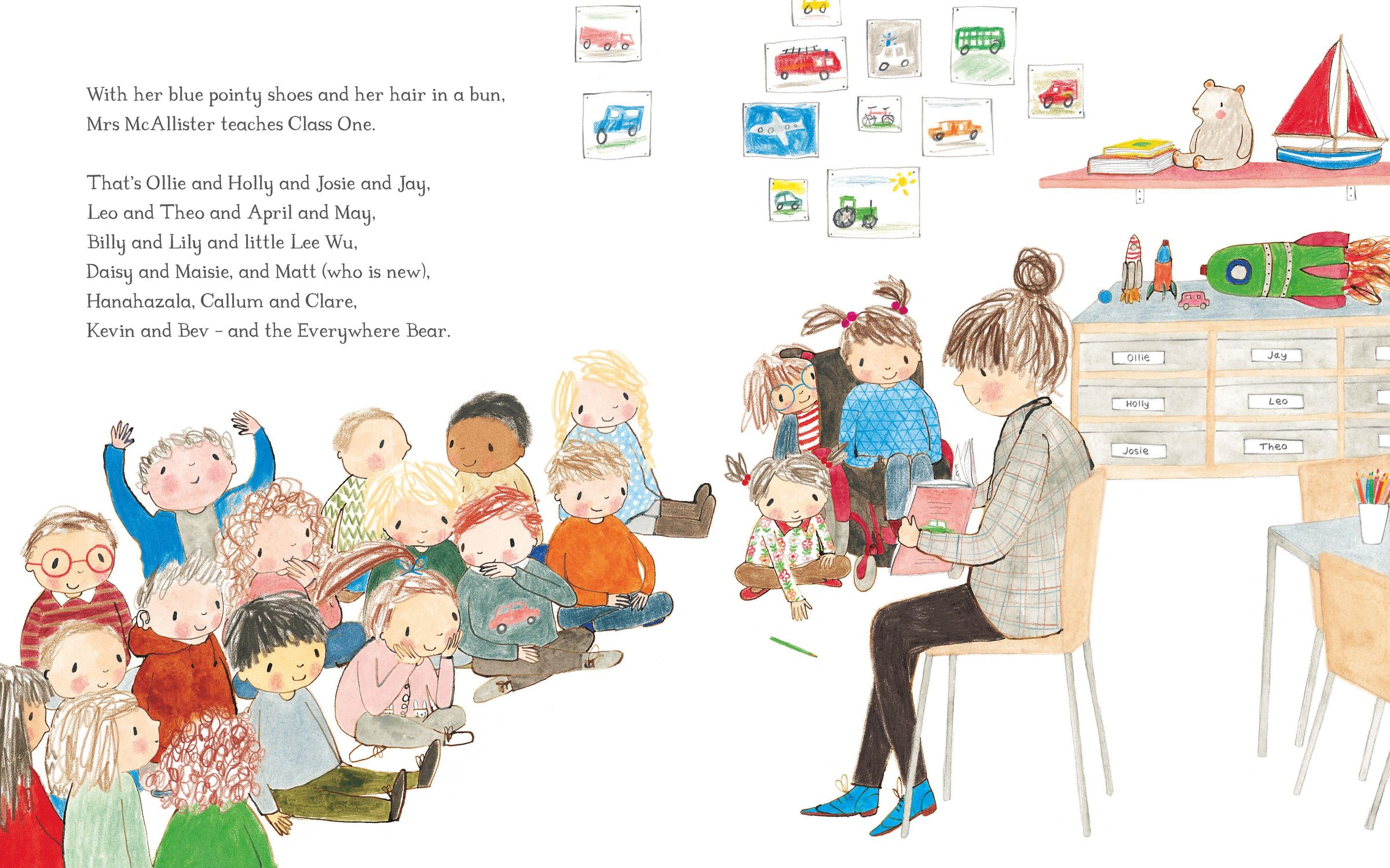 The Everywhere Bear has a wonderful time with the children in Class One, but one day he gets more than he bargained for when he falls unnoticed from a backpack and embarks on his own big adventure! He's washed down a drain and whooshed out to sea, rescued by a fishing boat, loaded onto a lorry, carried off by a seagull . . . how will he ever make it back to Class One?