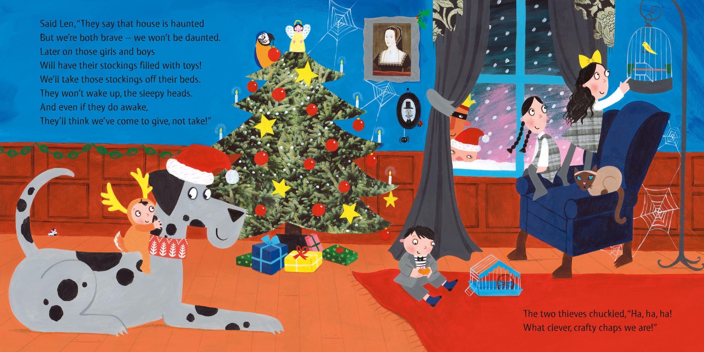 In a big old house, the ladybird is visiting her friend the spider for the festive season. But those two bad men, Hefty Hugh and Lanky Len, are up to no good again. They have a devious plan - to steal the children's Christmas presents from their stockings! It's a good thing that the clever little ladybird has overheard their awful plotting, and she has a cunning plan to make sure they don't get away with it.