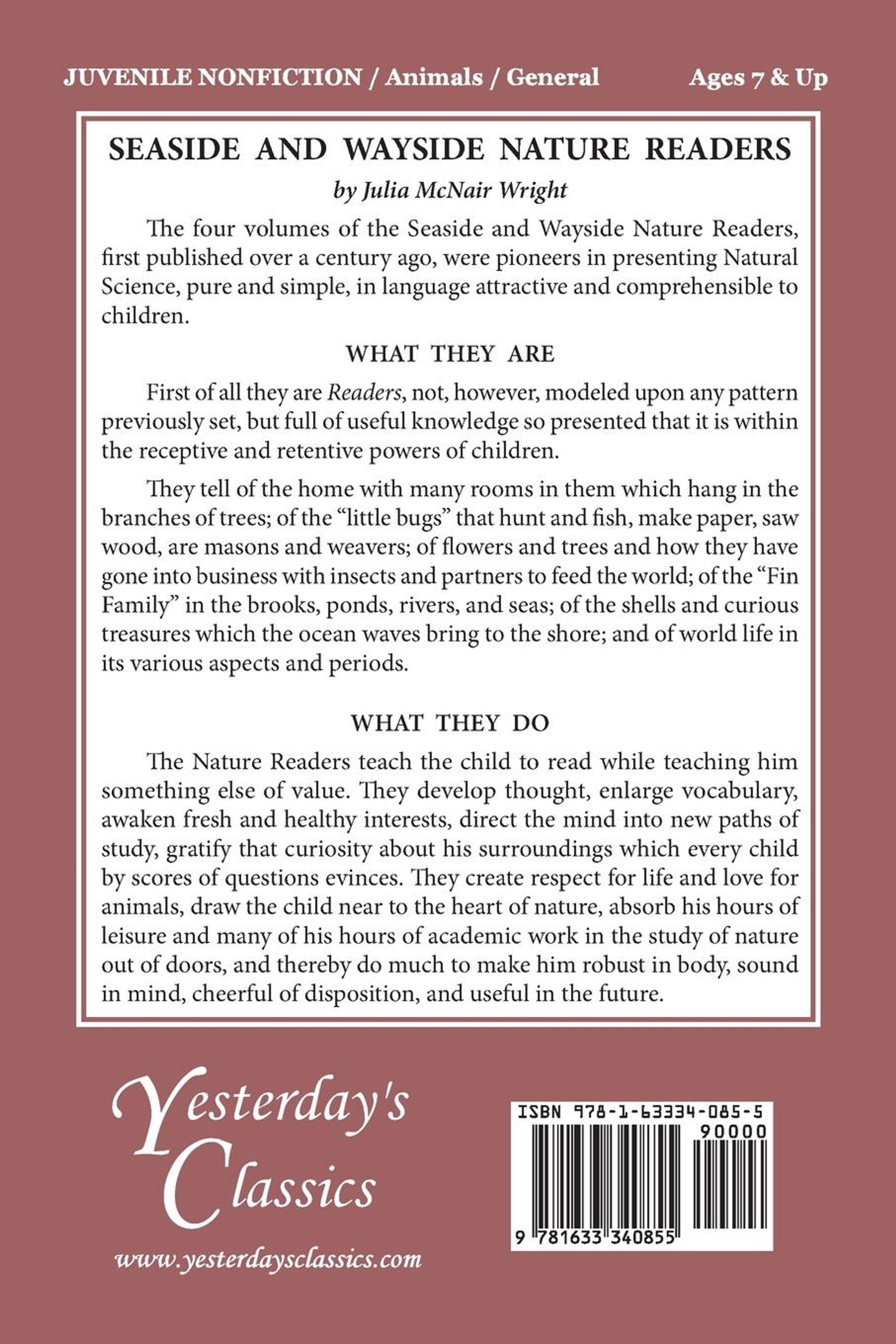 The primary purpose of the four volumes of the Seaside and Wayside nature readers is to teach children to read while teaching them something else of value. They develop thought, enlarge vocabulary, awaken fresh and healthy interests, direct the mind into new paths of study, and gratify that curiosity about his surroundings which every child by scores of questions shows.
