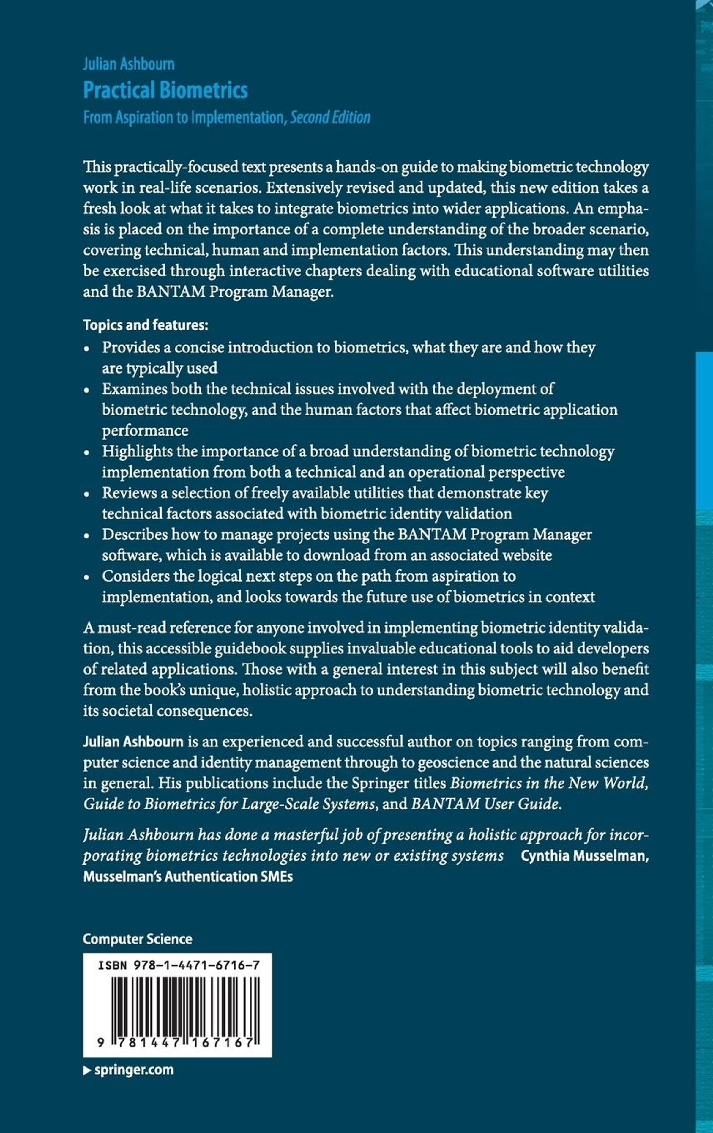 This practically-focused text presents a hands-on guide to making biometric technology work in real-life scenarios. Extensively revised and updated, this new edition takes a fresh look at what it takes to integrate biometrics into wider applications. An emphasis is placed on the importance of a complete understanding of the broader scenario, covering technical, human and implementation factors. This understanding may then be exercised through interactive chapters dealing with educational software utilities and the BANTAM Program Manager. Features: provides a concise introduction to biometrics; examines both technical issues and human factors; highlights the importance of a broad understanding of biometric technology implementation from both a technical and operational perspective; reviews a selection of freely available utilities including the BANTAM Program Manager; considers the logical next steps on the path from aspiration to implementation, and looks towards the future use of biometrics in context.